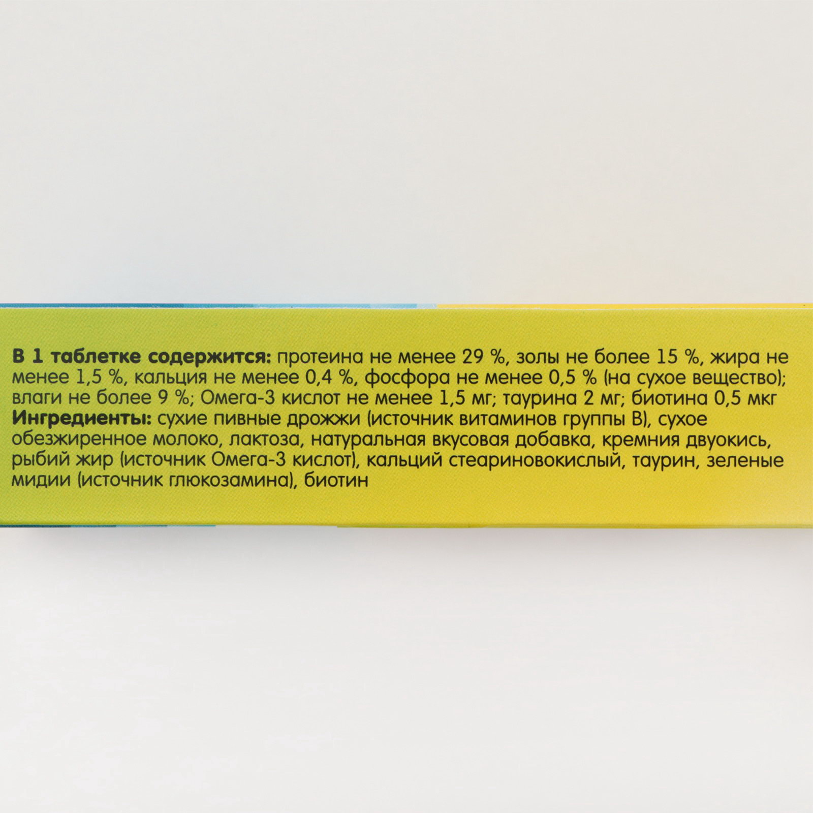 Размер упаковки: 8.5 x 12 x 3 см. Вид: Витамины Запрет реализации по сегментам: 00000000578 tnved: 2309109000 Меркурий: Да Честный знак: Да Вид лакомств: Мультивитаминные Вес, г: 45 Есть вет.справка: Да Зоотовары с отдельным счётом: Да Температурное ограничение: Нет Темпер. ограничение НЕ ВЫШЕ ℃: +30 Темпер. ограничение НЕ НИЖЕ ℃: +1 Улучшенное витаминизированное лакомство для кошек, приготовленное из натуральных ингредиентов, обладающее повышенной поедаемостью и эффективностью. Рекомендуется в качестве дополнительного питания и источника биологически активных веществ, а также для поощрения и баловства Ваших питомцев. Улучшает состояние кожи и шерстного покрова; Уменьшает проявления кожных заболеваний; Нормализует обменные процессы в тканях кожи; Поддерживает остроту зрения; Помогает выработать полезные привычки; Ускоряет и нормализует сезонную линьку; Обеспечивает нормальную работу сердечно-сосудистой системы; Поддерживает активный образ жизни; Снижает последствия стрессов. Биотин обеспечивает здоровый внешний вид и густоту шерсти, упругий, неломкий волос и прочность когтей. Таурин - не вырабатываемая организмом кошек аминокислота, обеспечивающая отличное зрение, нормальную работу сердца, печени, почек, нормальное протекание беременности и лактации. В результате применения лакомства укрепляется иммунитет, улучшается внешний вид кожи и шерсти. Препарат нормализуют деятельность сердечно-сосудистой, нервной, иммунной системы. Состав продукта: В 1 таблетке содержится: белки 33%, жиры 4%, зольные компоненты, не менее 14%, влага, не более 9%, кальций, не менее 4,1%, фосфор, не менее 1,9%, биотин, 1,0 мкг; таурин 60 мкг; этиловые эфиры незаменимых жирных кислот класса Омега-3, не менее 1,5 мг. | ||