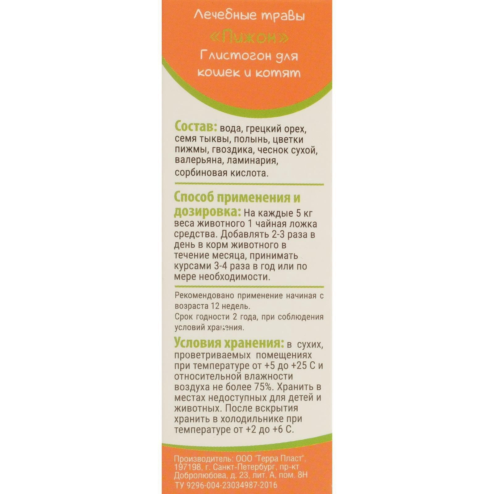 Лечебные травы глистогон, для кошек, 50 мл, Пижон, Россия