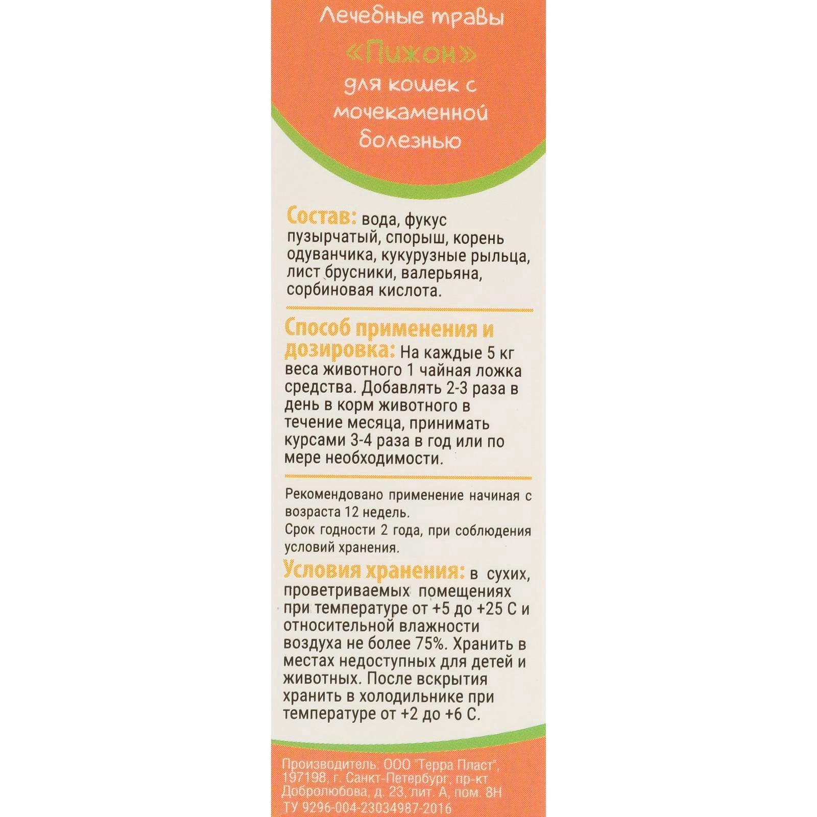 Лечебные травы для кошек с мочекаменной болезнью, 50 мл, Пижон, Россия