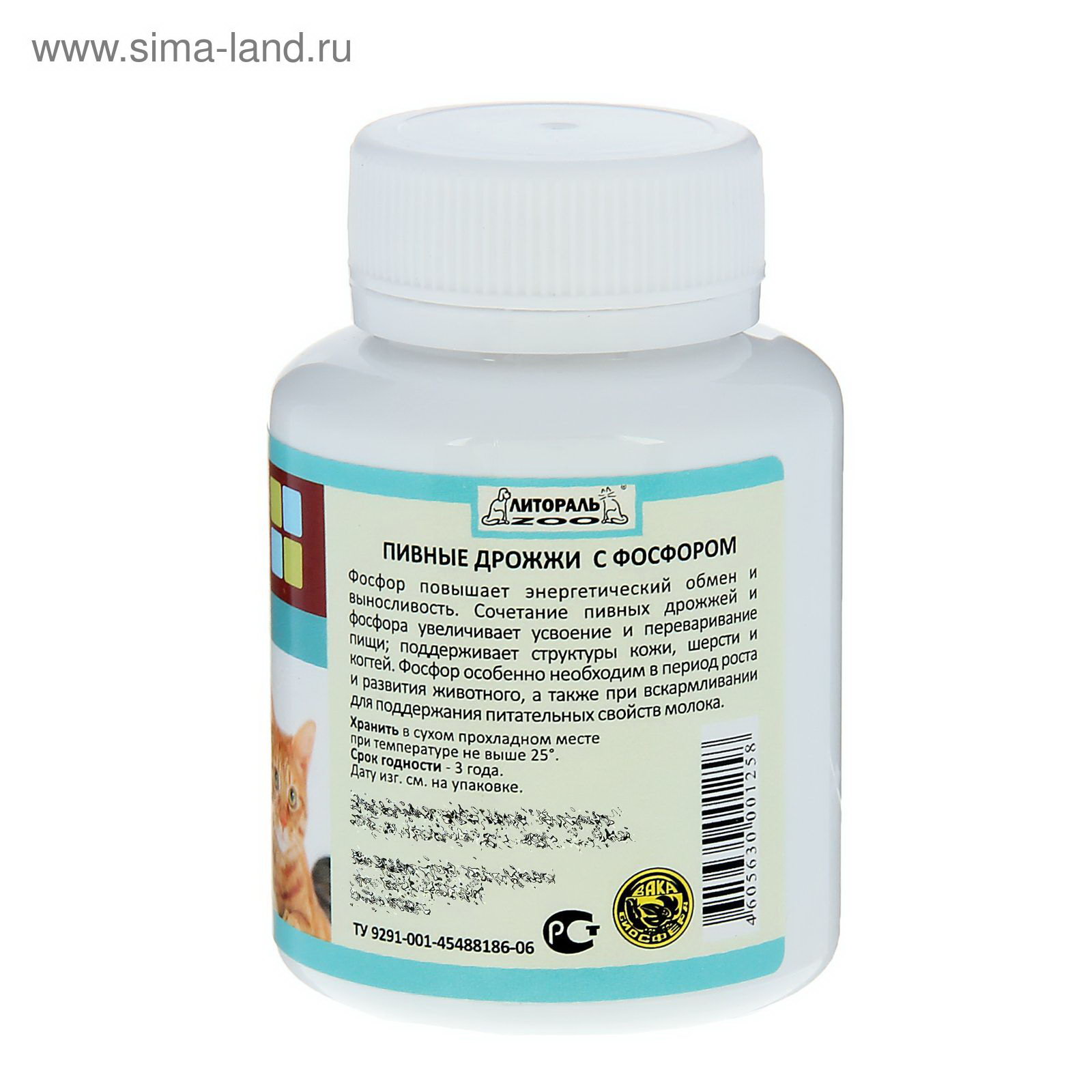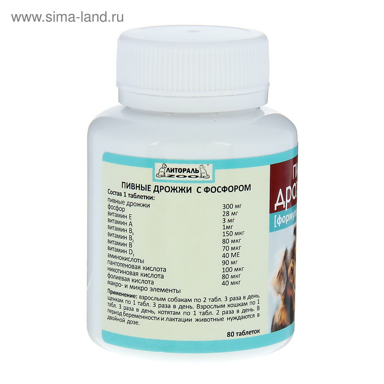 Размер упаковки: 8 x 5 x 5 см. Вид: Кормовая добавка tnved: 2106909800 Запрет реализации по сегментам: 00000000578 Зоотовары с отдельным счётом: Да Есть вет.справка: Да Темпер. ограничение НЕ ВЫШЕ ℃: +30 Темпер. ограничение НЕ НИЖЕ ℃: +1 Состав 1 таблетки: пивные дрожжи - 300 мг, фосфор 28 мг, витамины: Е - 3 мг, А ?1 мг, В2 - 80 мкг, В1 - 70 мкг, В6 - 150 мкг, D - 40 МЕ, аминокислоты, пантотеновая кислота - 100 мкг, никотиновая кислота - 80 мкг, фолиевая кислота 40 мкг, макро- и микроэлементы. Физиологическое действие:
