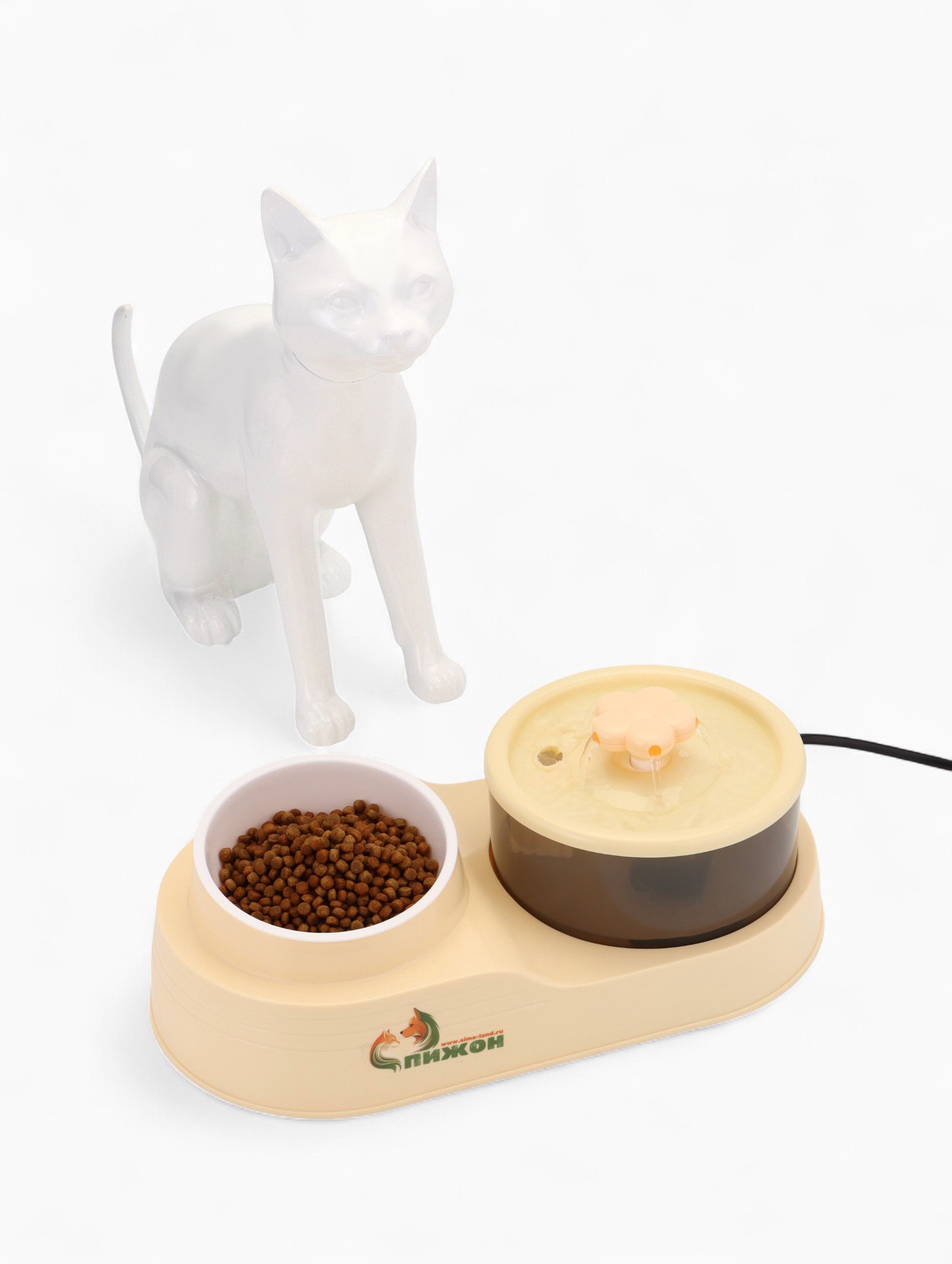 Фонтан для животных с миской 34x17.5x11.5 см, бежевый, 17.5x34x11.5 см., Пижон, Китай