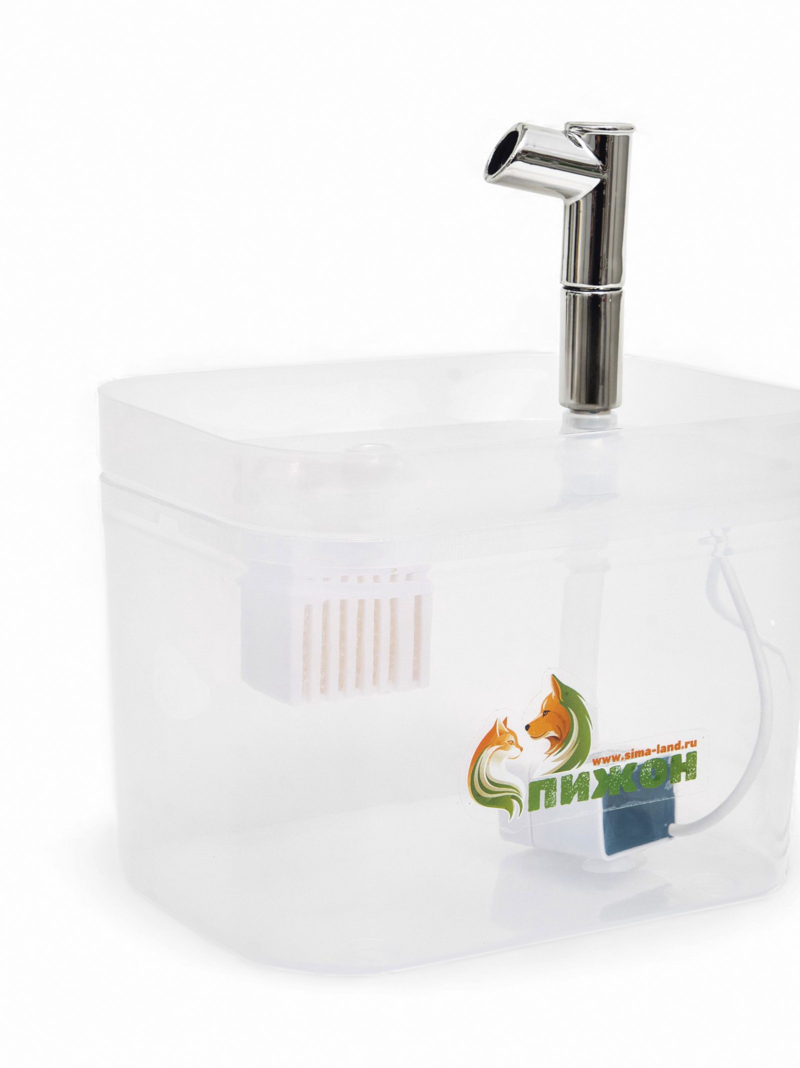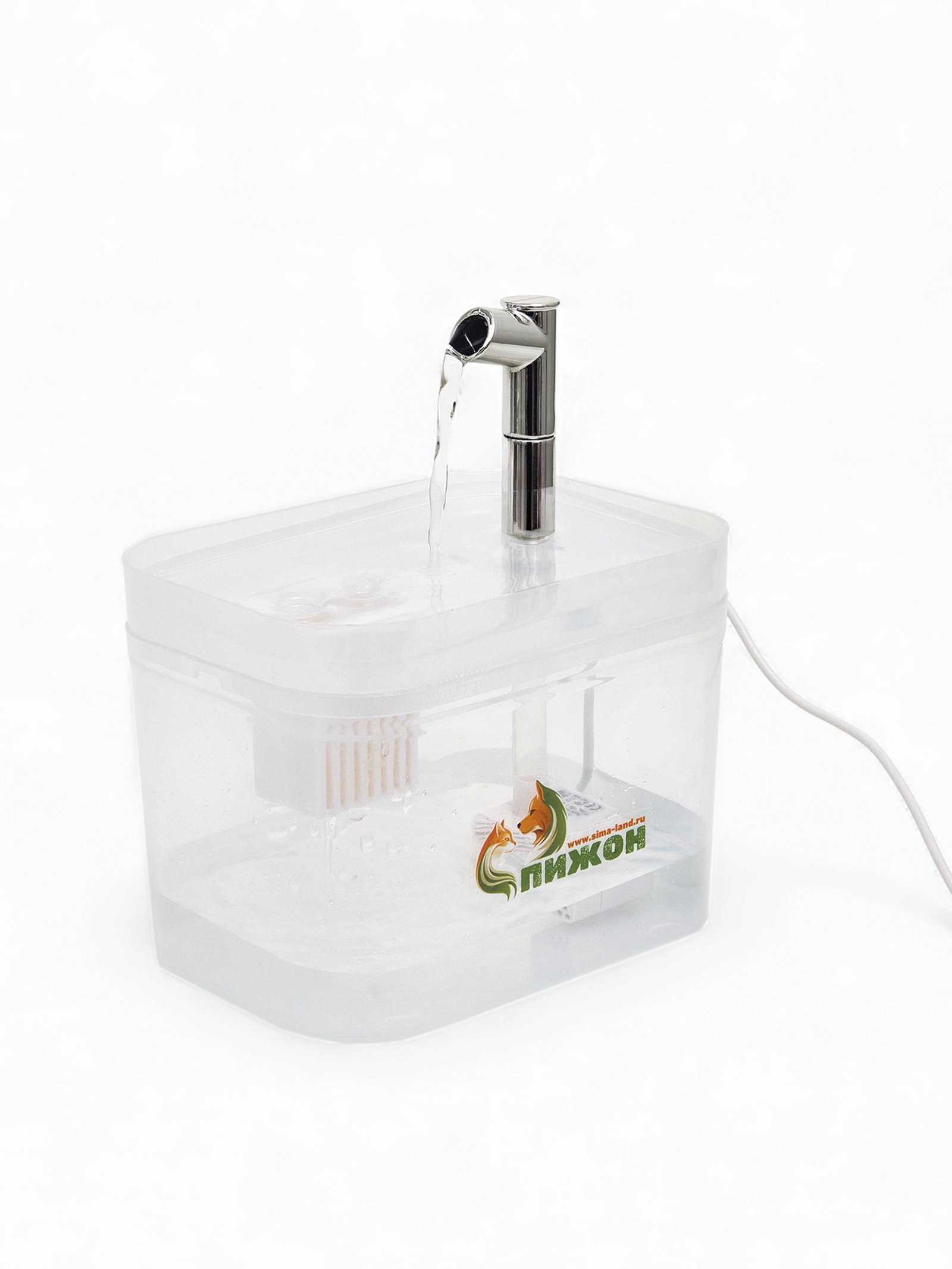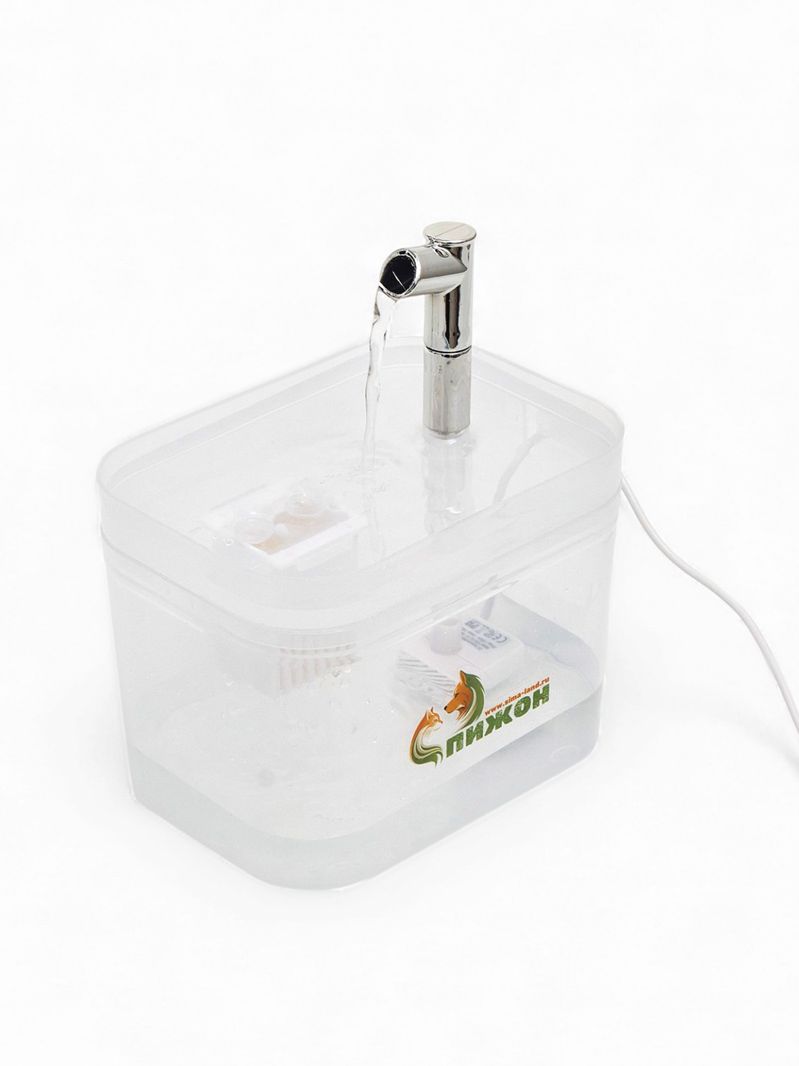 Фонтан для кошек и собак 1.5 л, 16.5x13x12 см, евророзетка, прозрачный, 11.5x16.5x12 см., Пижон, Китай