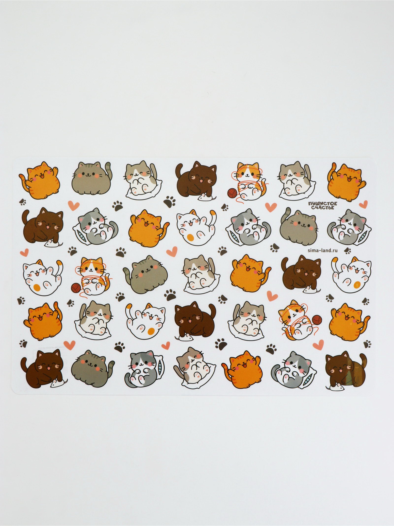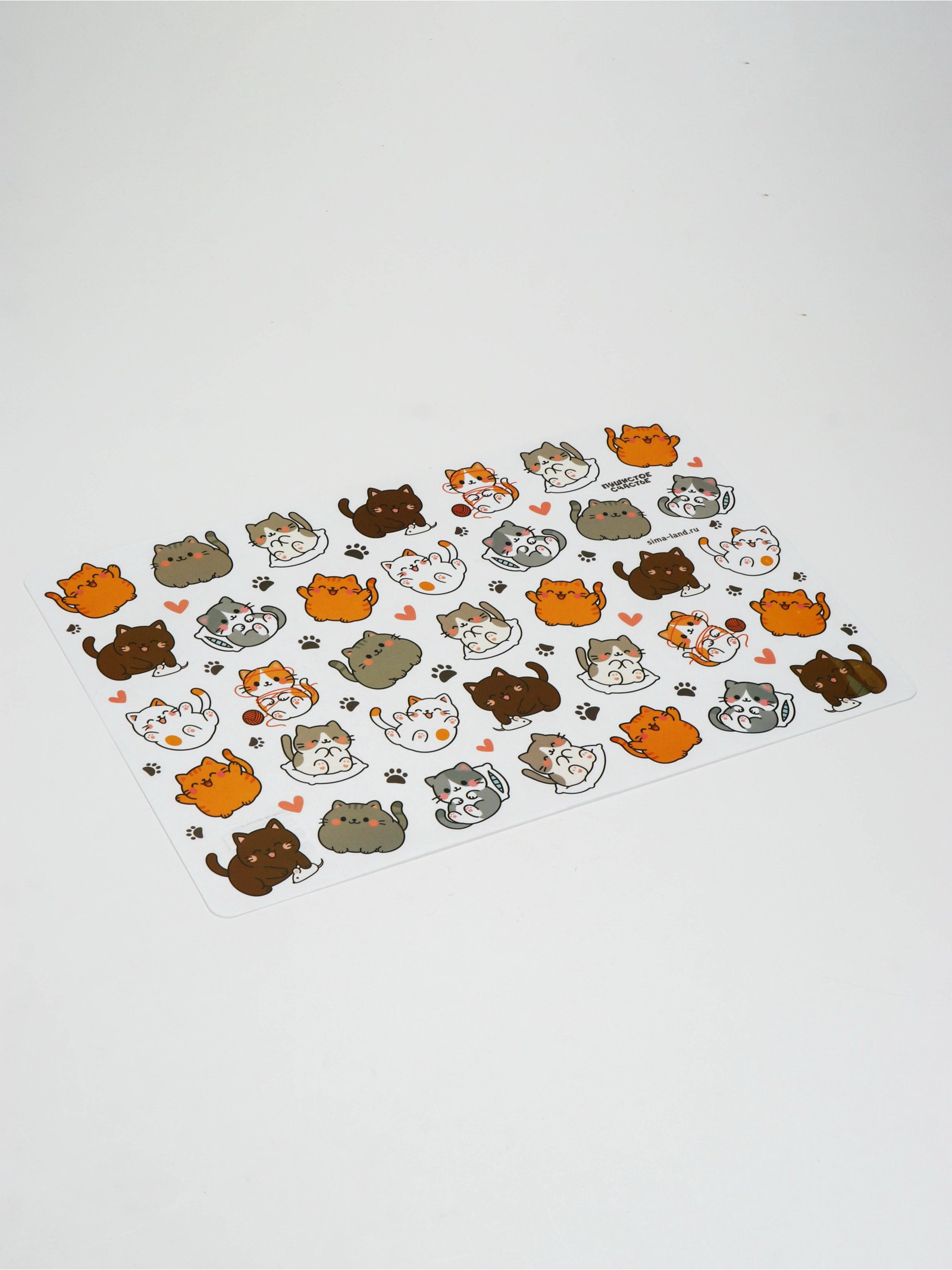 Коврик под миску "Много котиков!", 43x28 см, 28x43x0.1 см., Пушистое счастье, Китай