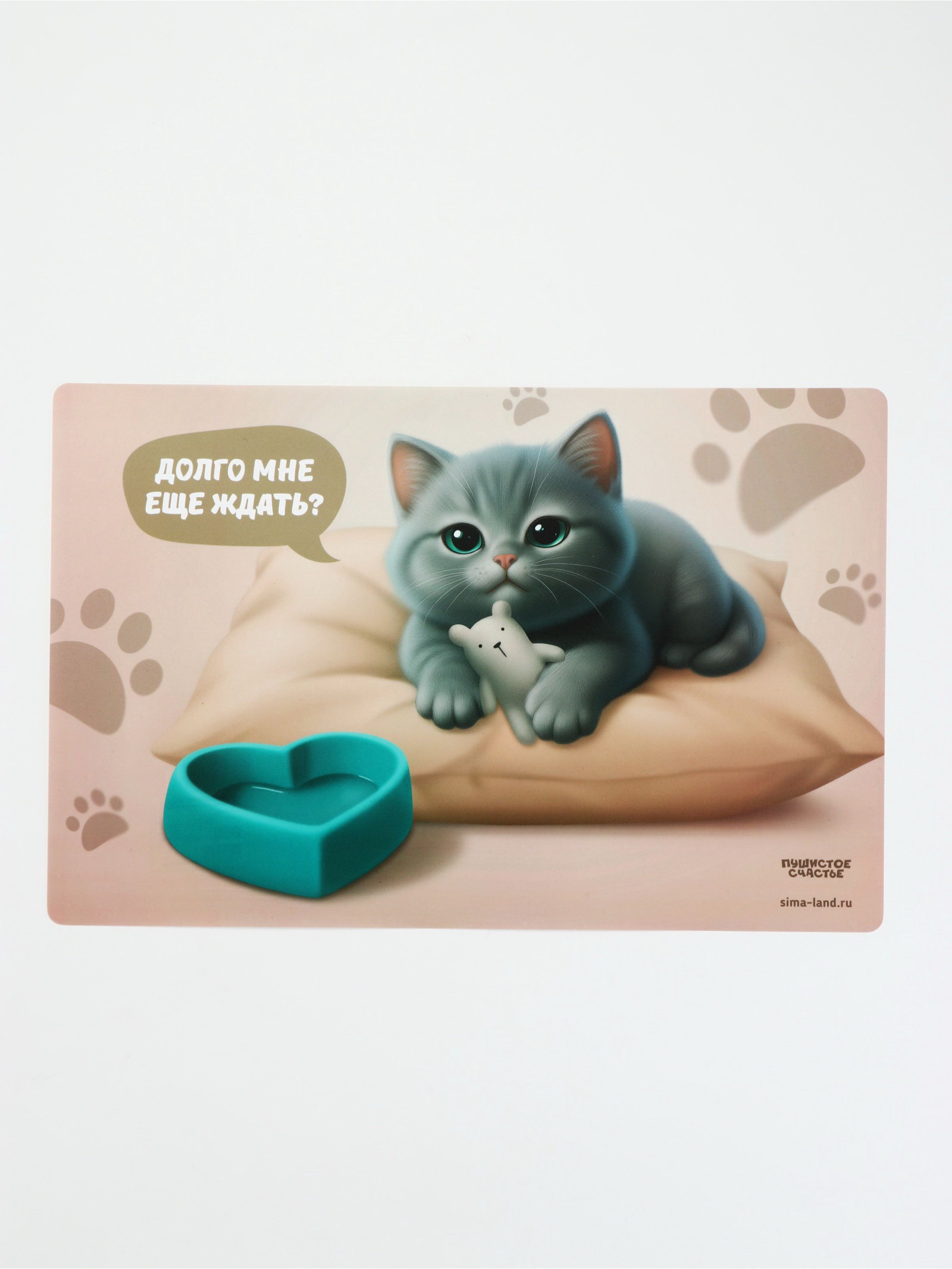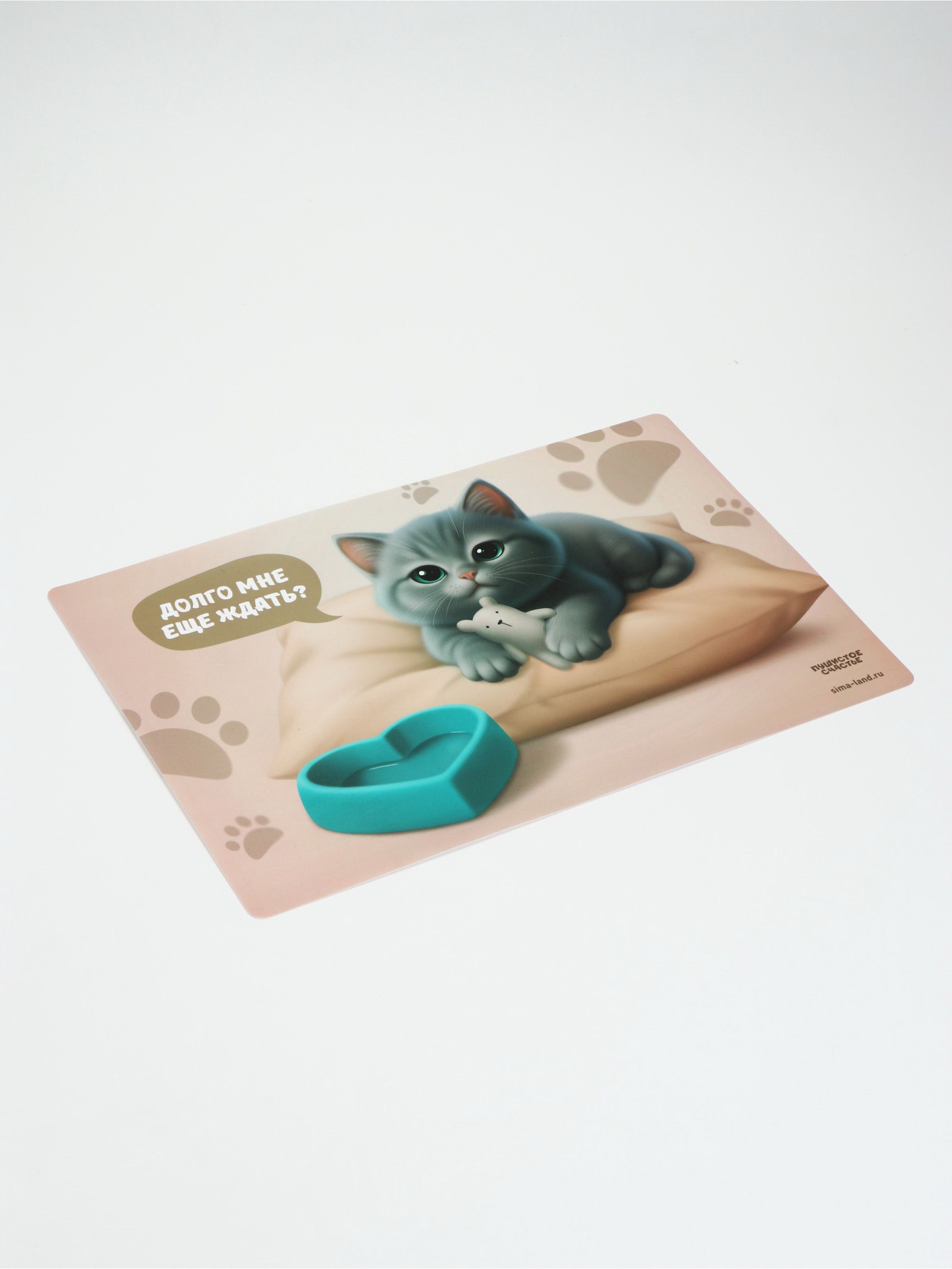 Коврик под миску "Котик недовольный", 43x28 см, 28x43x0.1 см., Пушистое счастье, Китай