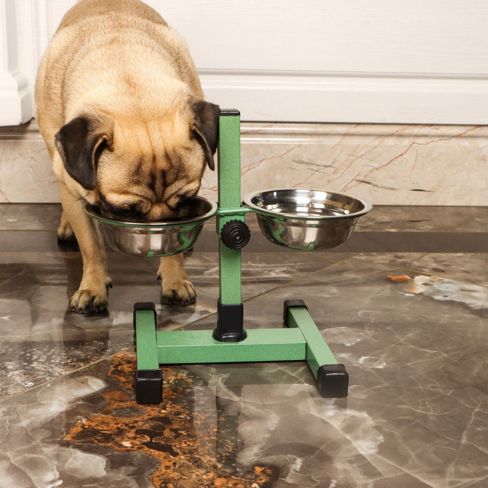 Подставка с мисками для кошек и собак 2x250 мл, высота 25 см, разборная, зелёная, 250 мл., Пижон, Россия