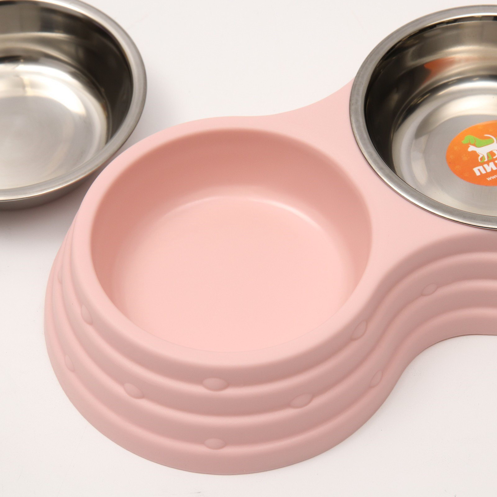 Миска металлическая двойная на пластиковом основании, 25x14x5 см, розовая, 14x25x5 см., Пижон, Китай