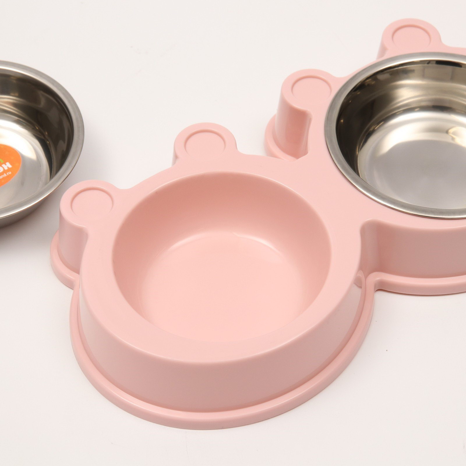 Миска металлическая двойная на пластиковой основе, 27.8x15.5x4 см, розовая, 15.5x27.8x4 см., Пижон, Китай