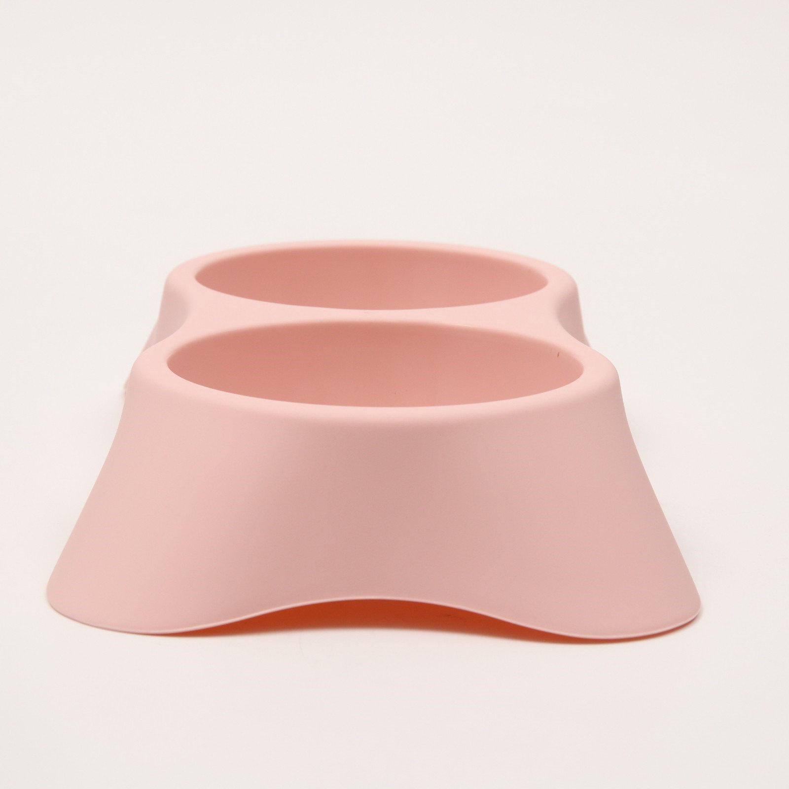 Миска пластиковая двойная, 28x16x5 см, розовая, 16x28x5 см., Пижон, Китай