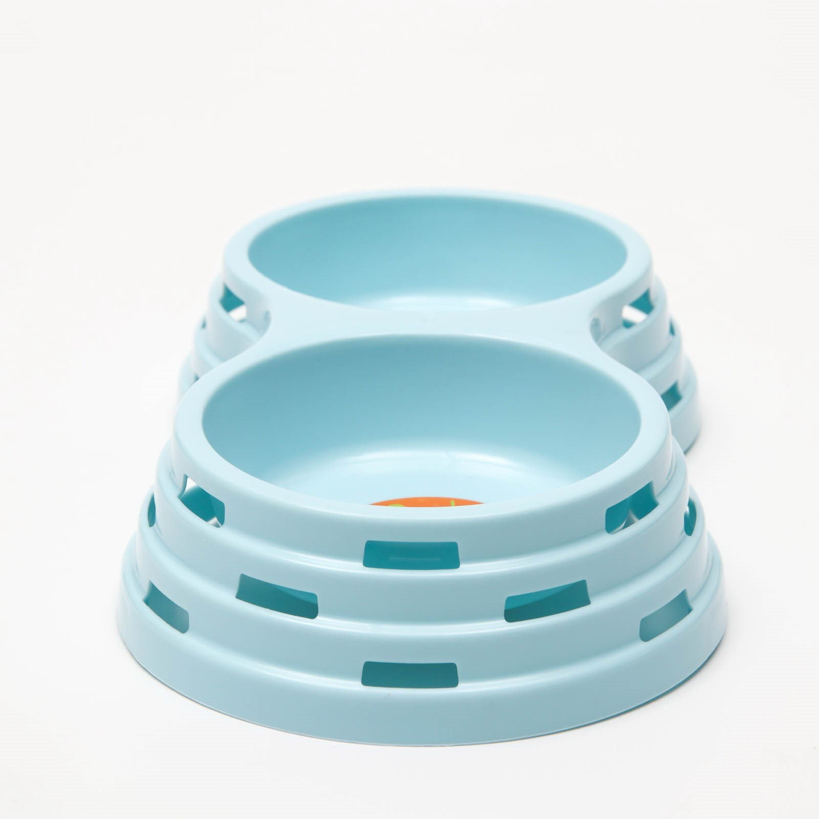 Миска рельефная пластиковая двойная 2 x 160 мл, 25 x 14 x 5 см, голубая, 14x25x5 см., Пижон, Китай