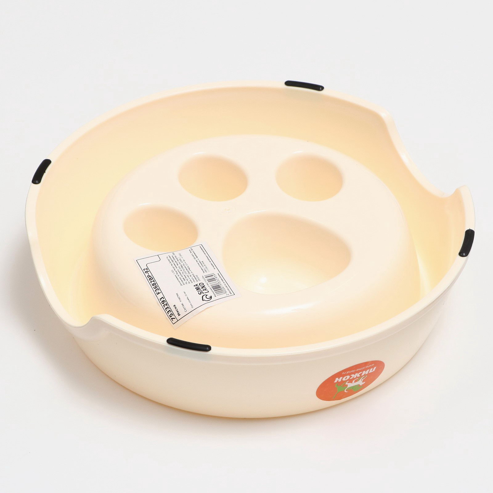 Миска для медленного кормления "Лапа", 800 мл, пластик, бежевая, 23x22.5x6.5 см., Пижон, Китай