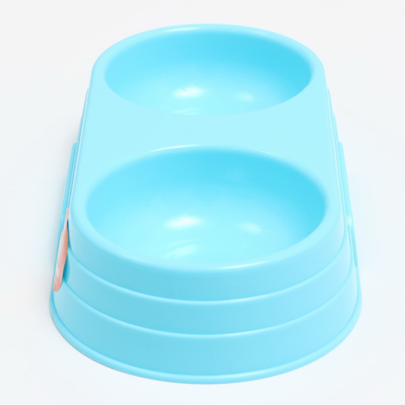 Миска пластиковая двойная "Дуэт", 24x12.5x4.5 см, голубая, 11.5x24x4.5 см., Пижон, Китай