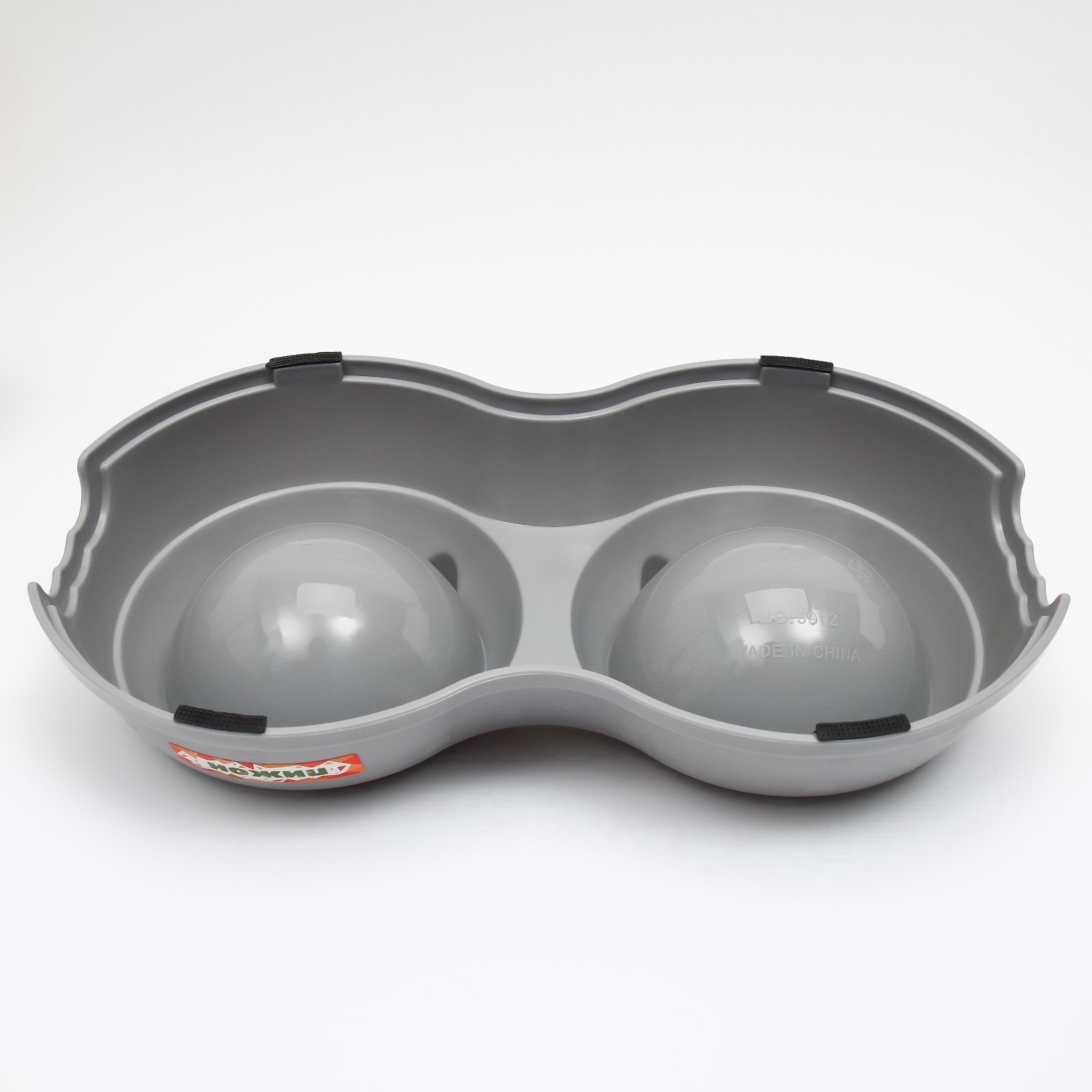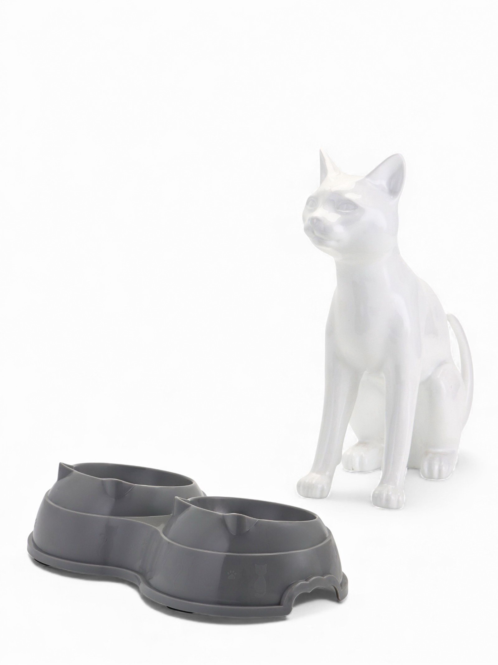 Миска двойная, 240 мл, 25x14x5 см, пластик, серая, 14x25x5 см., Пижон, Китай