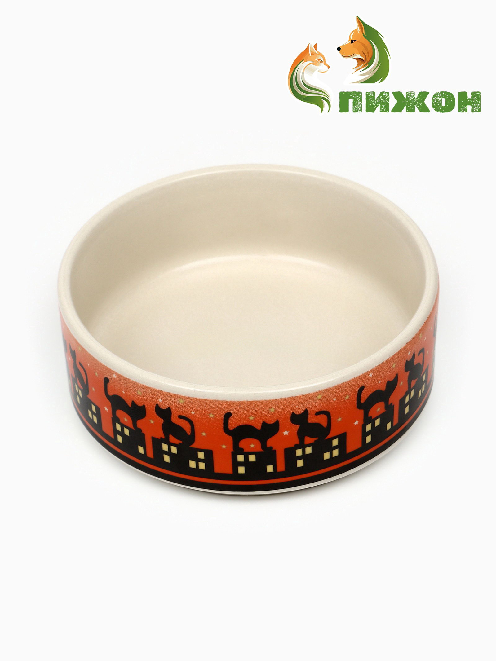 Миска керамическая "Ночные кошки" 200 мл, 10.5x4 см, красная, 10.5x10.5x4 см., Пижон, Китай