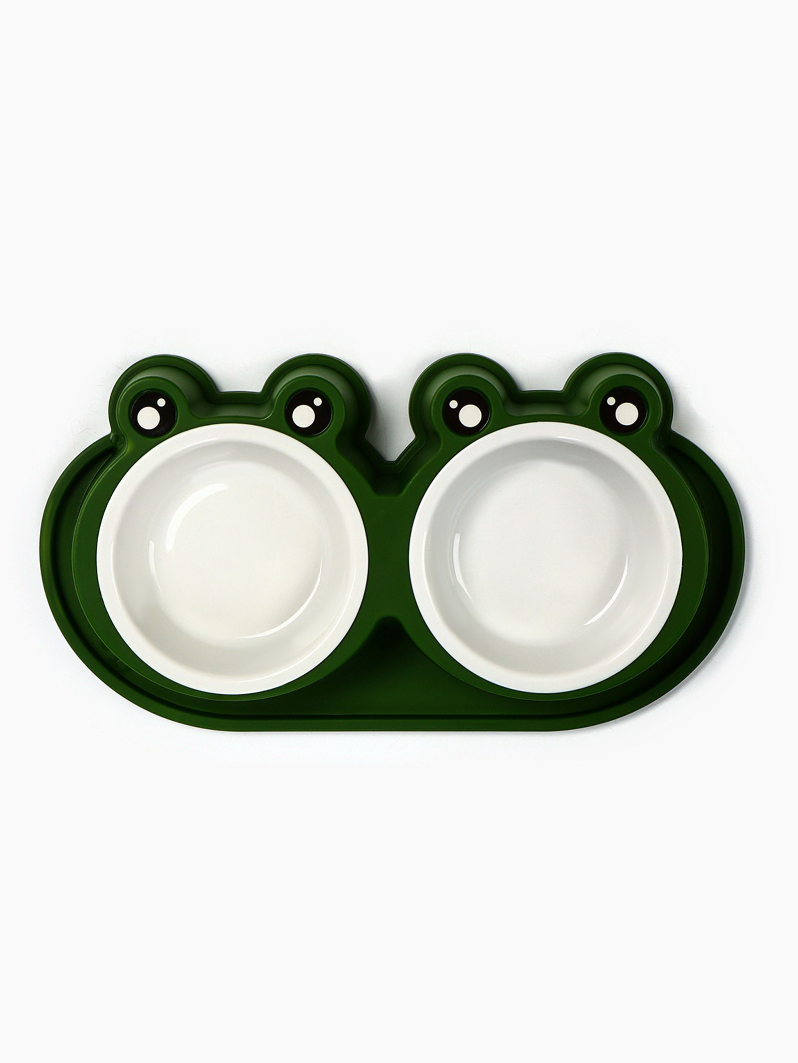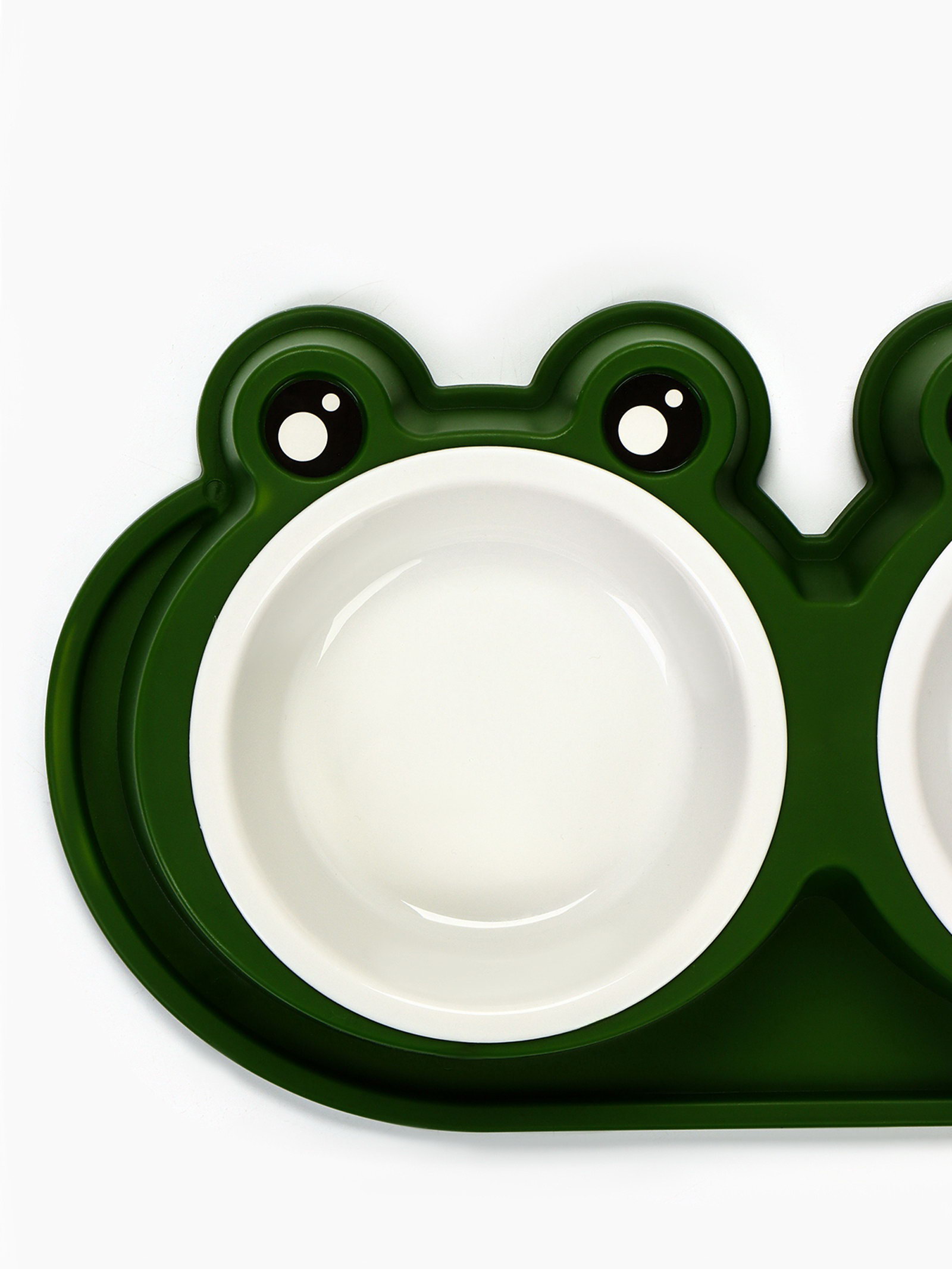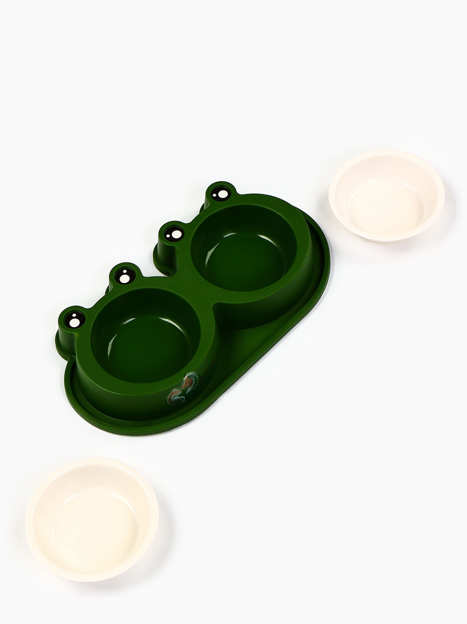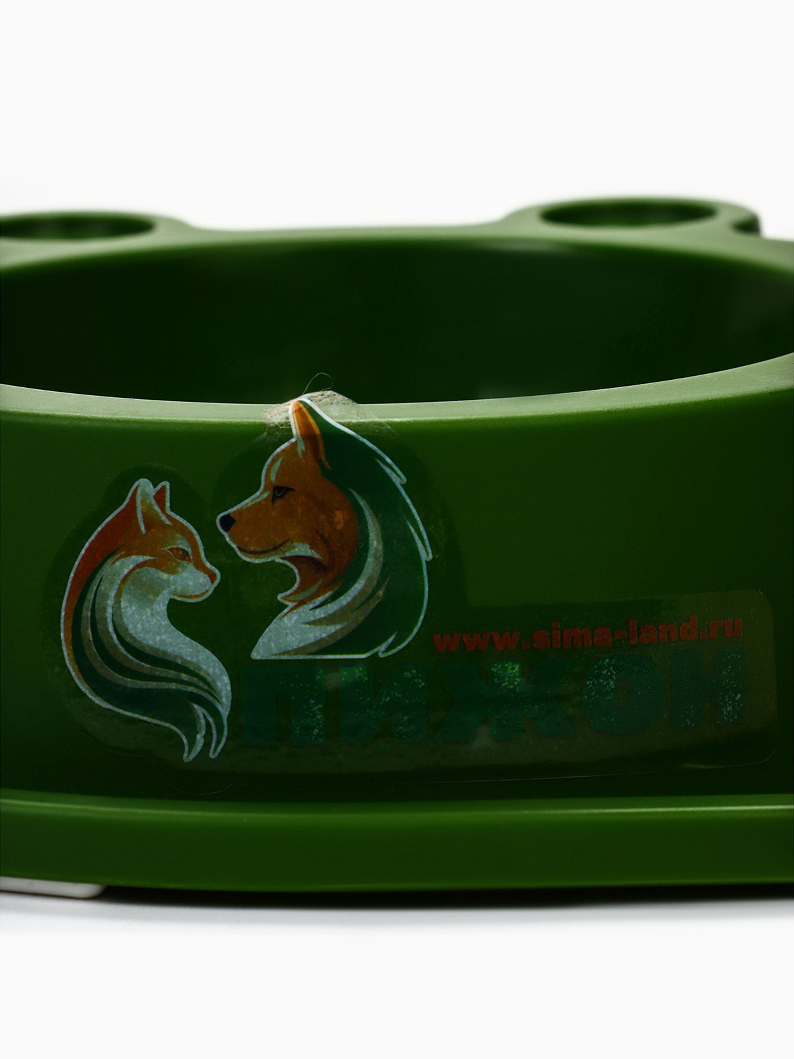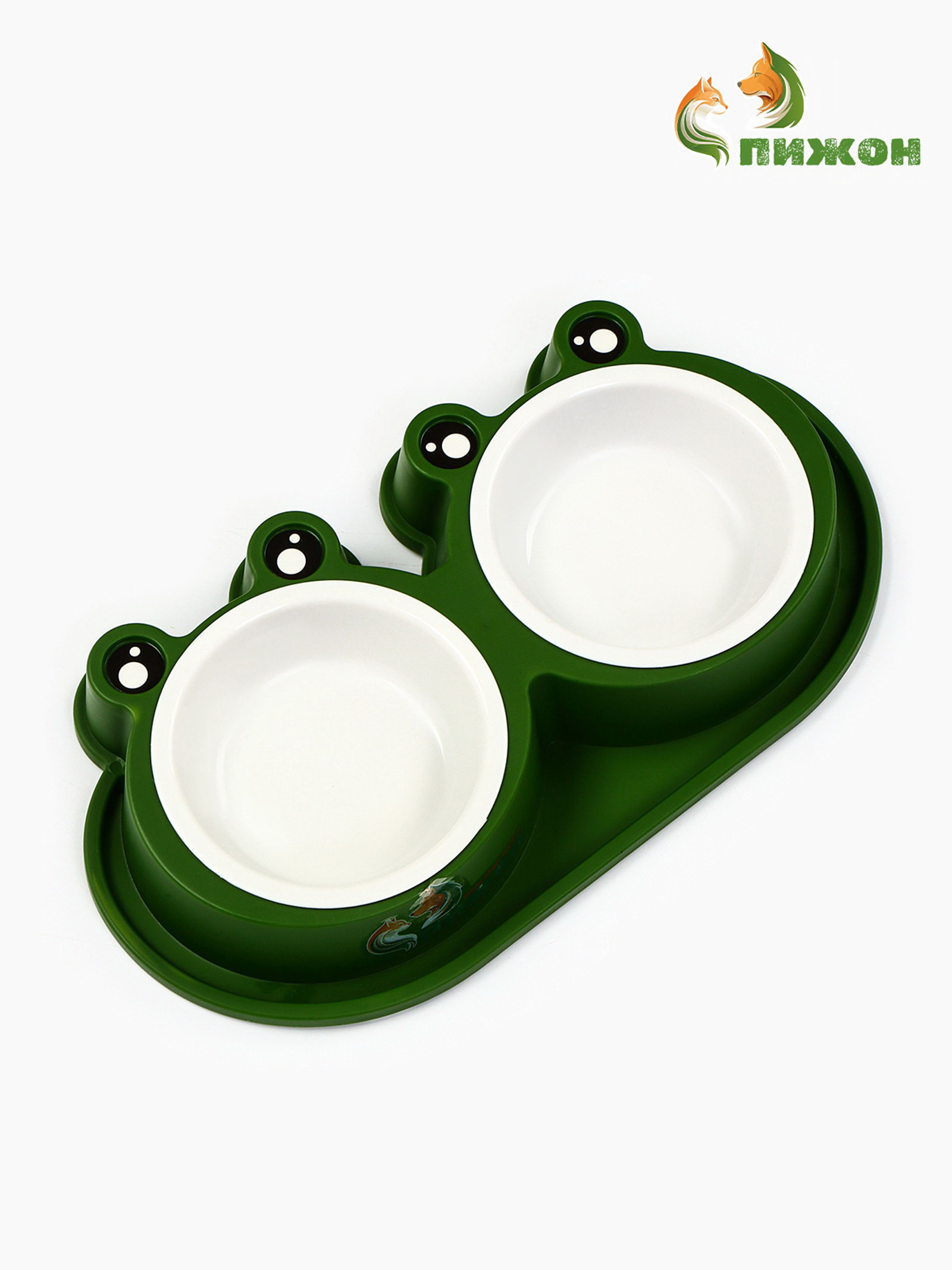 Миска двойная, 160 мл, 29.5x14x4 см, фигурная, пластик, зелёная, 14x29.5x4 см., Пижон, Китай
