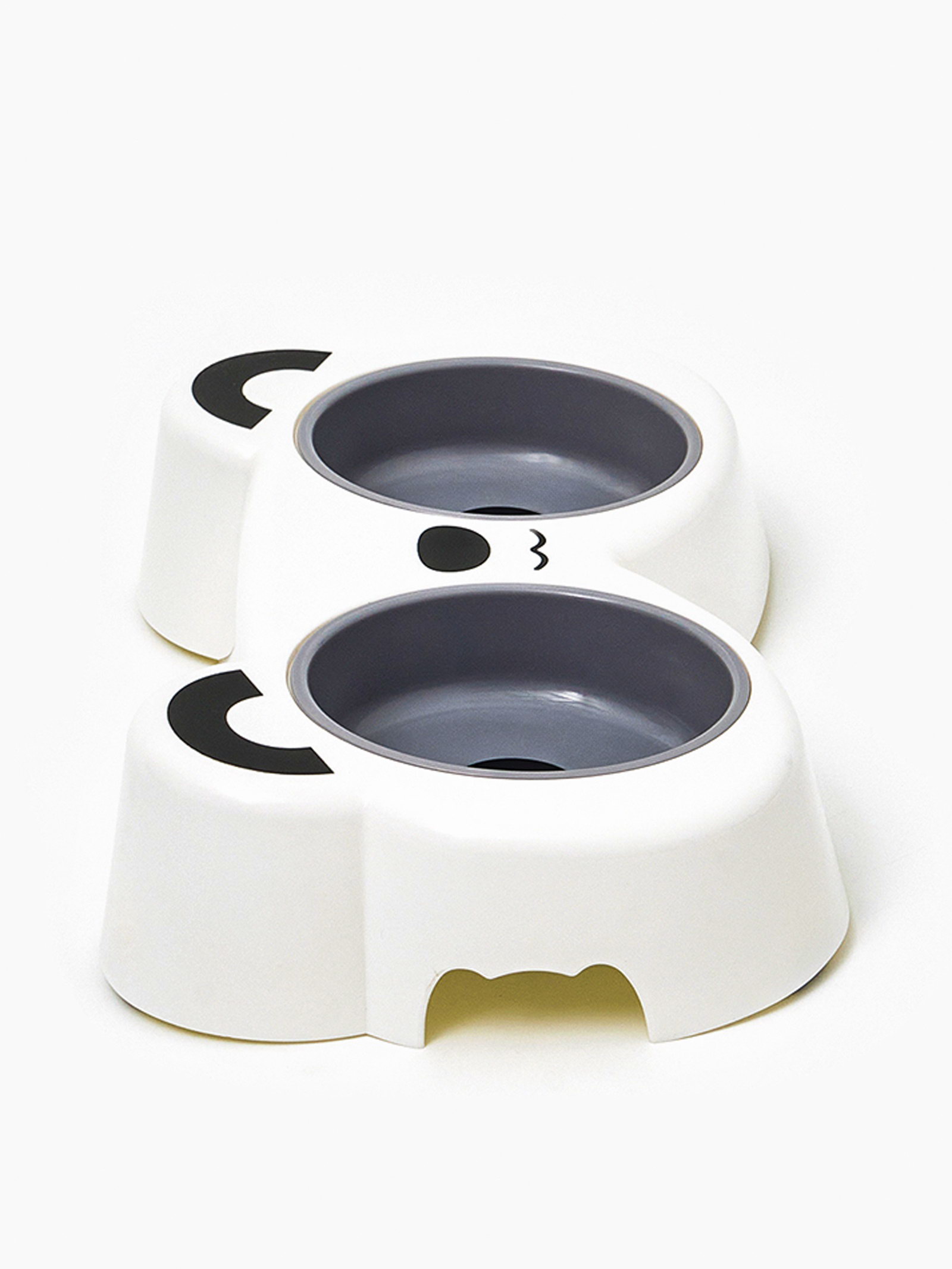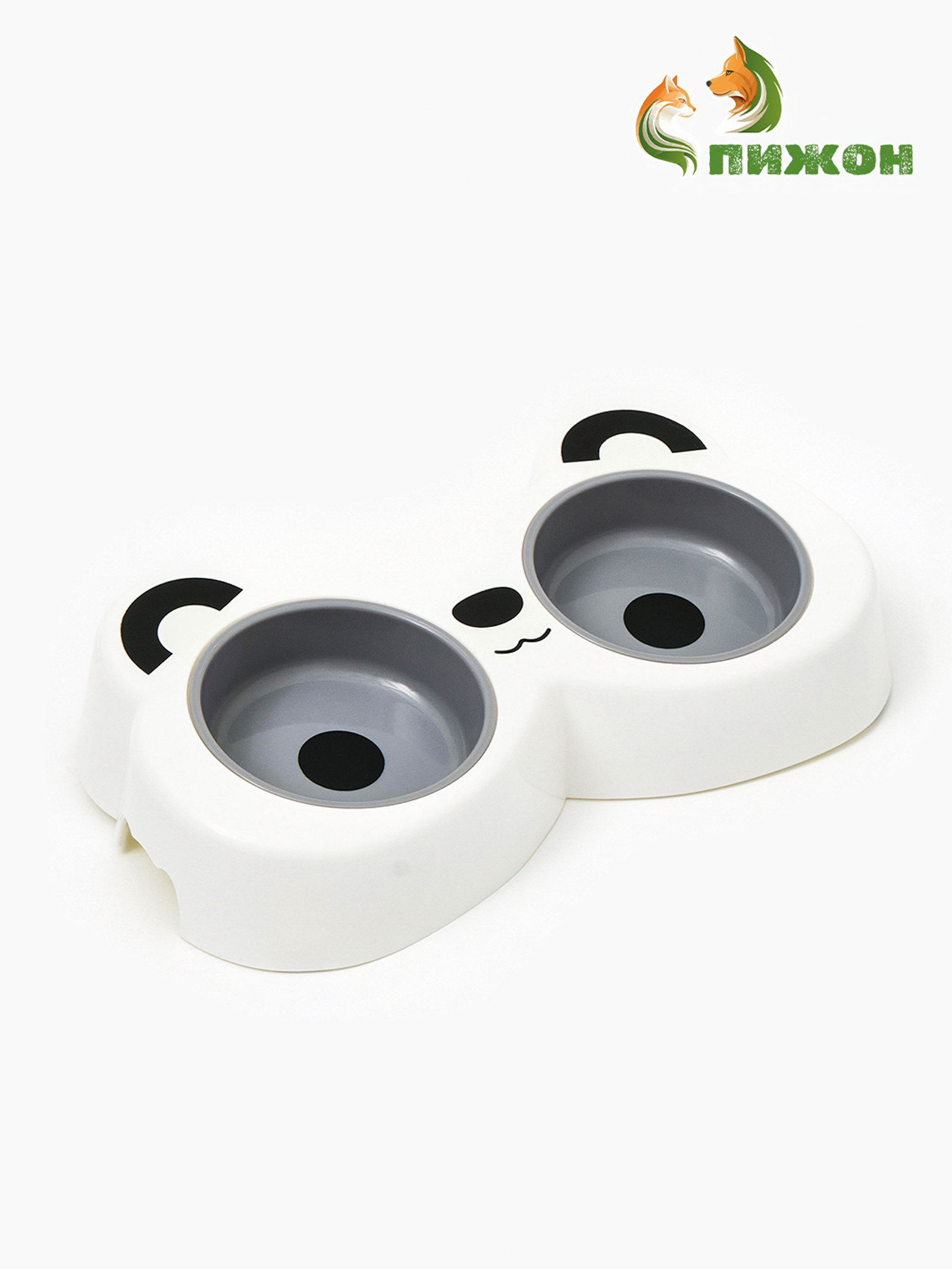 Миска двойная "Панда", 2x160 мл, пластик, белая, серая, 160 мл., Пижон, Китай