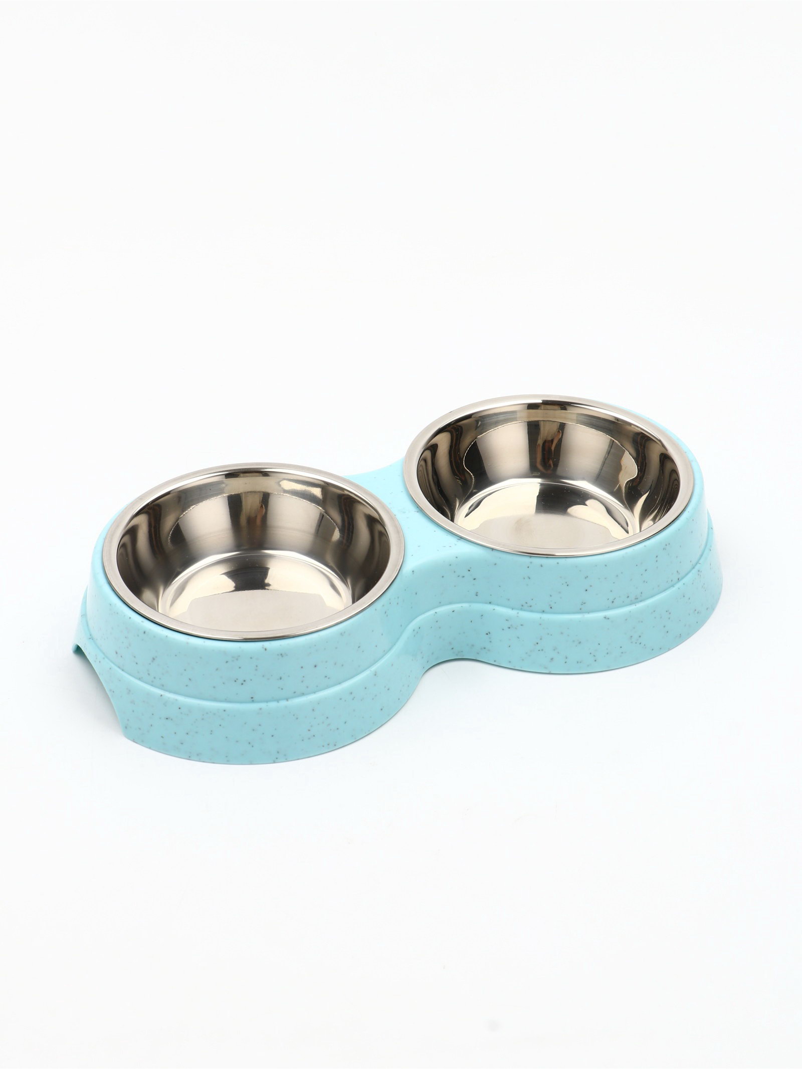 Миска металлическая двойная на пластиковом основании, 24 x 13 x 4.5 см, голубая, 13x24x4.5 см., Пижон, Китай