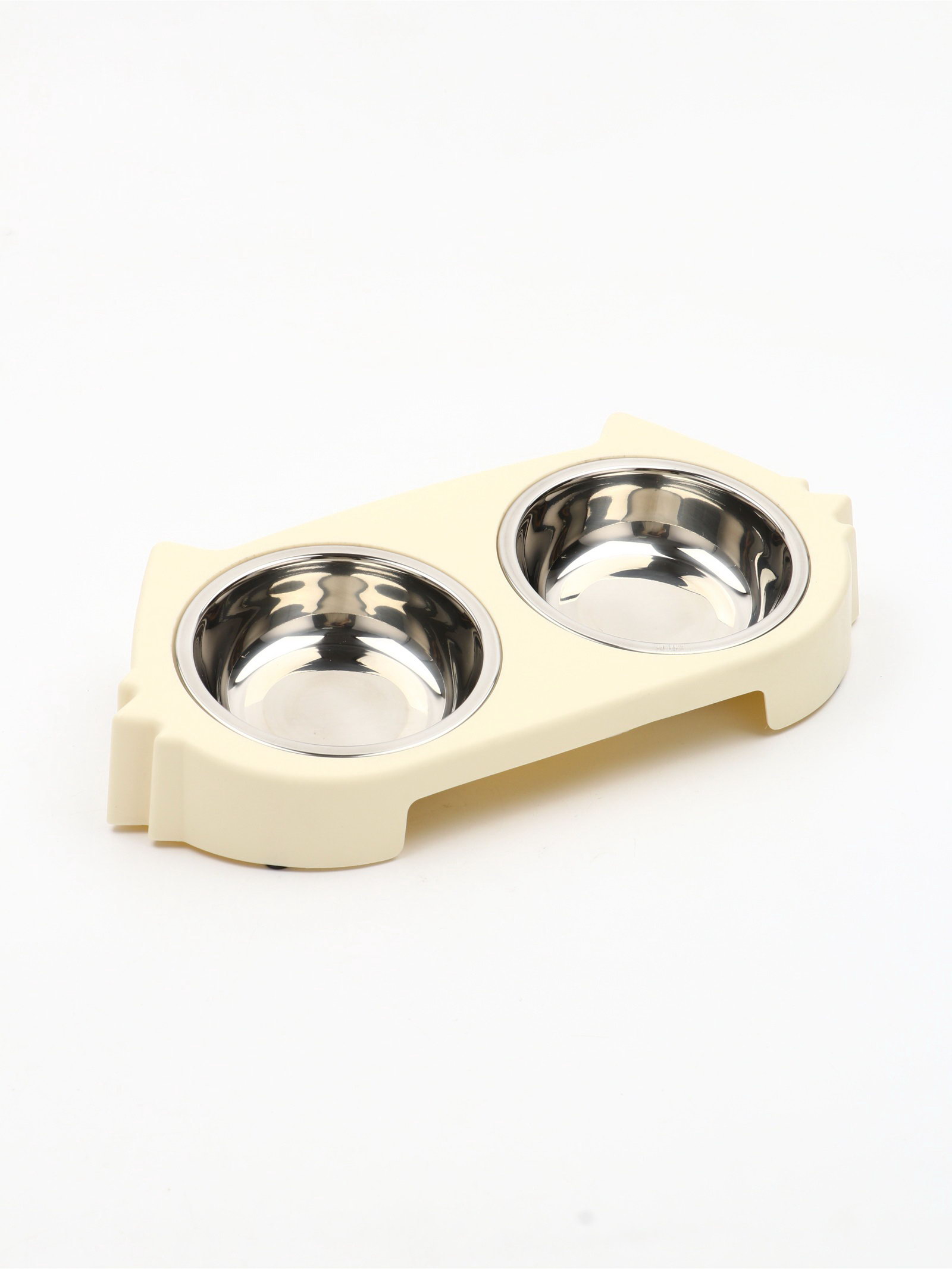 Миска металлическая двойная на пластиковом основании "Кот", 30.5 x 14.9 x 5.4 см, бежевая, 14.9x30.5x5.4 см., Пижон, Китай