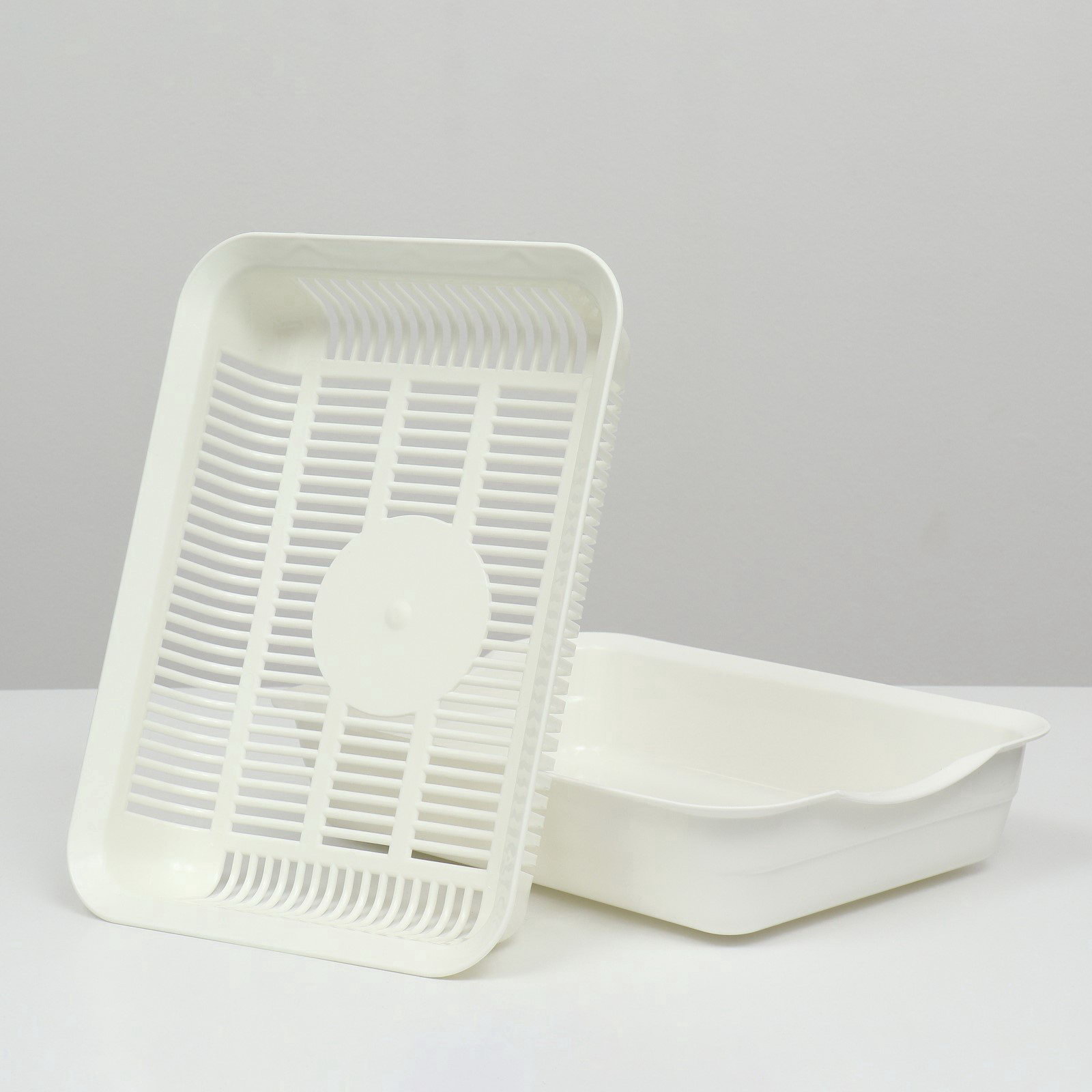 Туалет для кошек, 34.5x25.5x7.5 см, с сеткой, пластик, белый, Россия