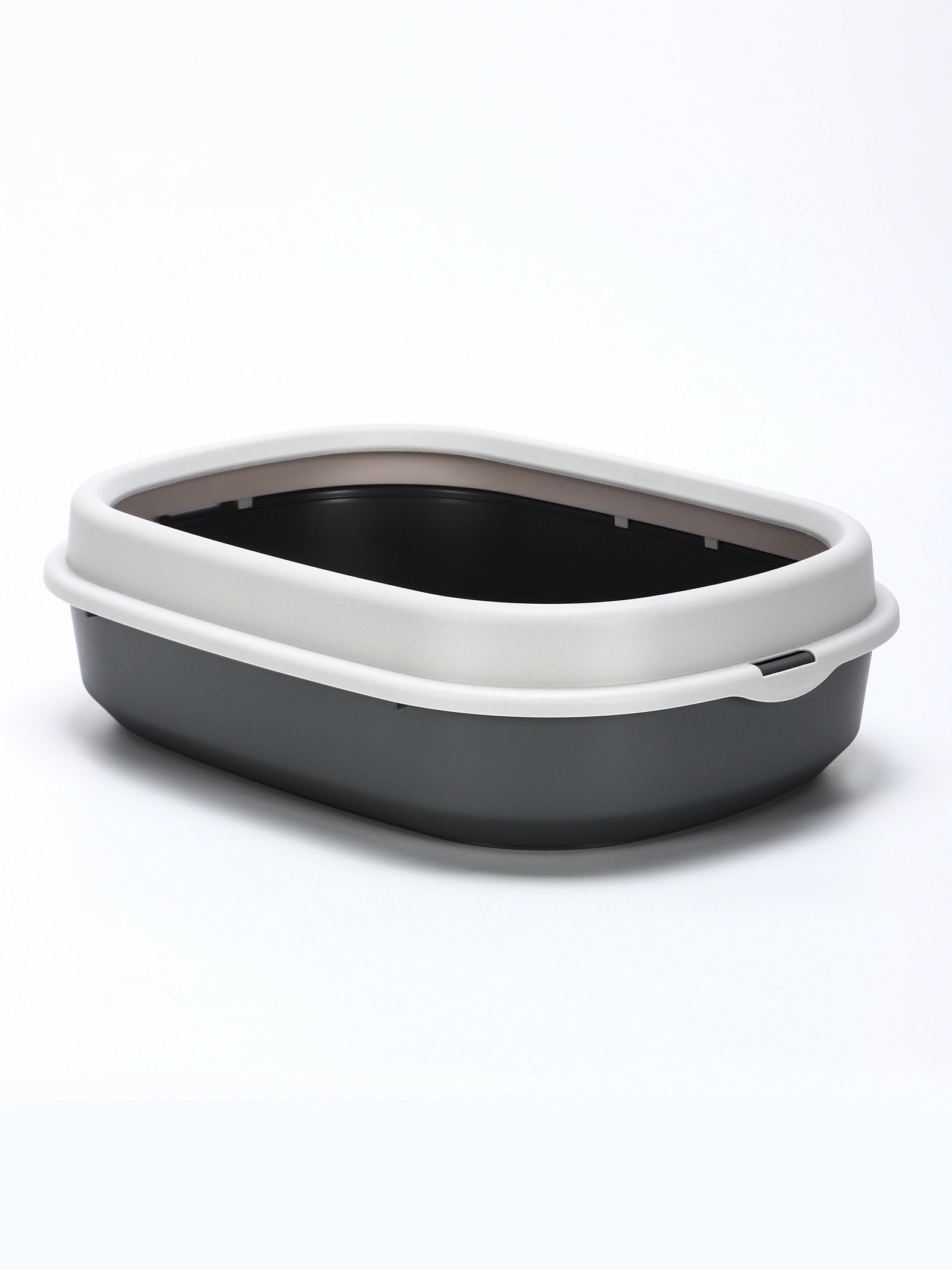 Лоток для кошек Фур-Мур 48x35.5 см с бортом + совок, Soft-touch, смоки, Россия