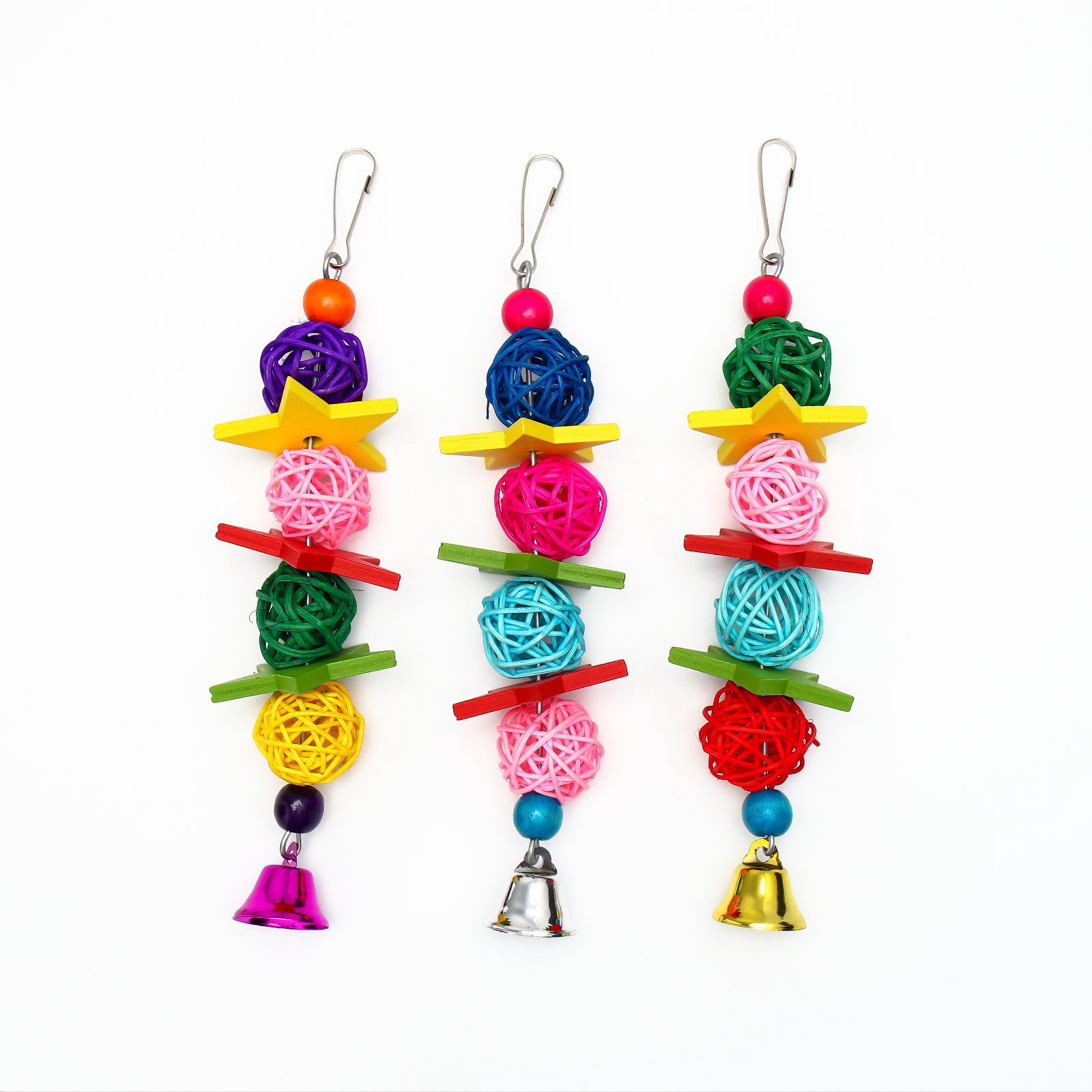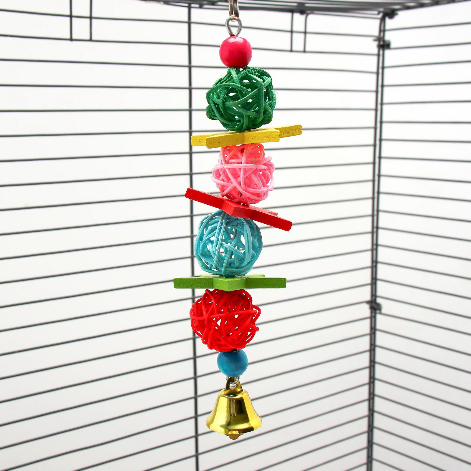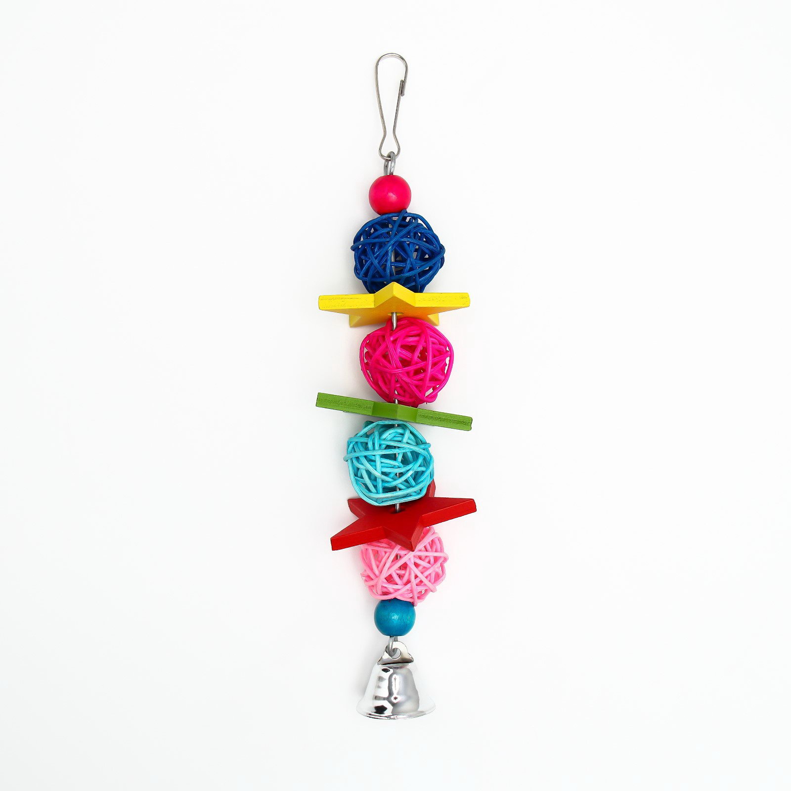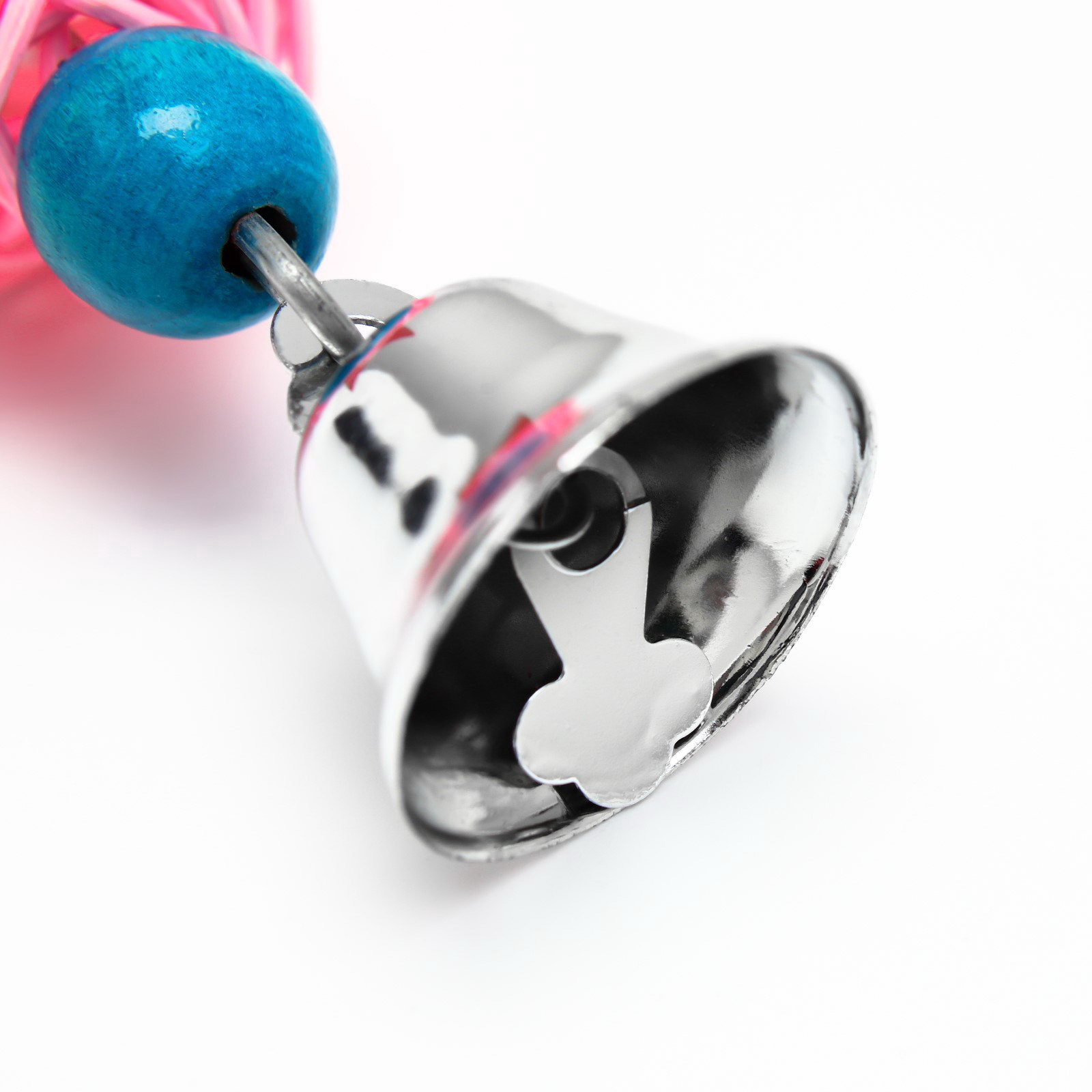 Игрушка для птиц, мячики такрау с колокольчиком и бусинам, микс цветов, Пижон, Китай
