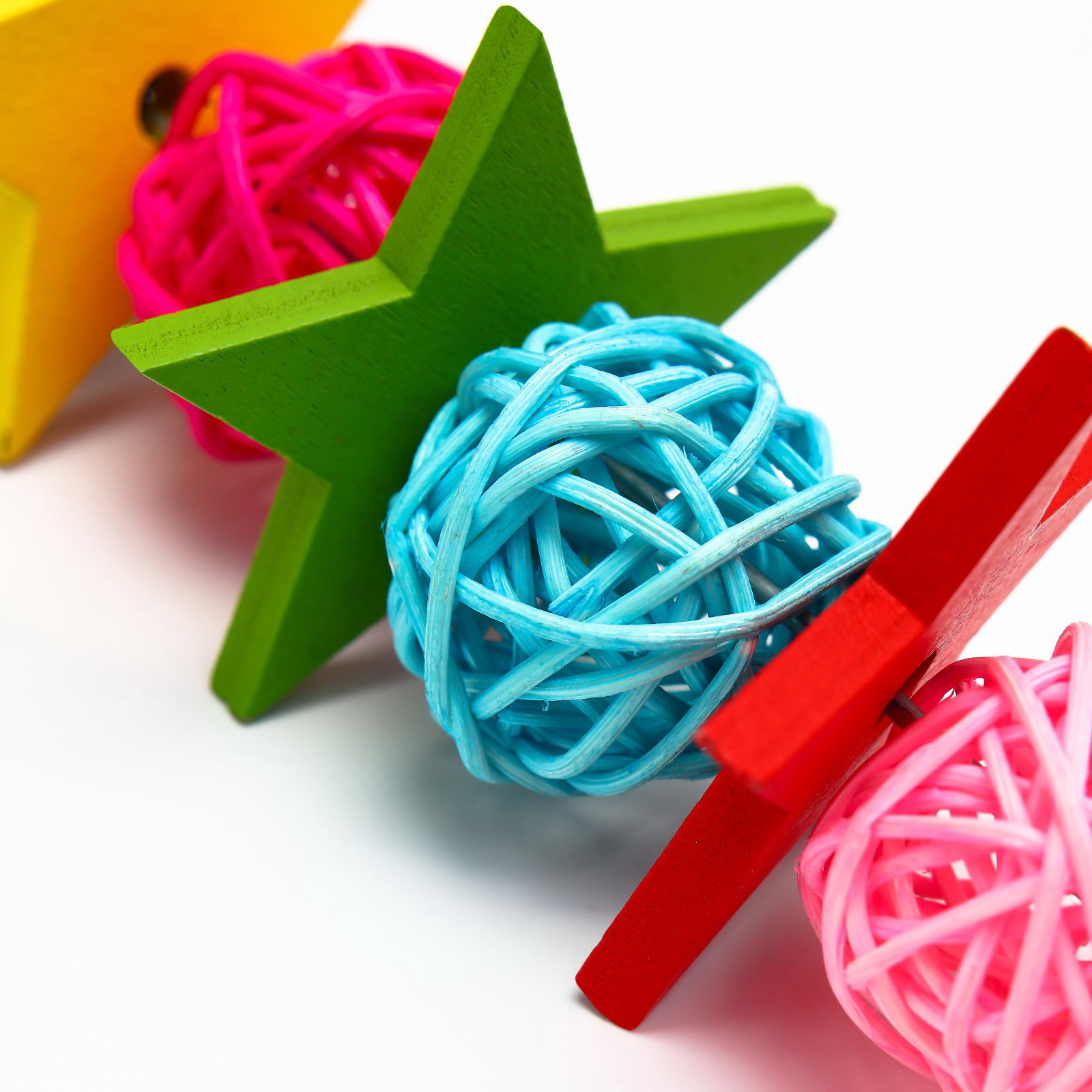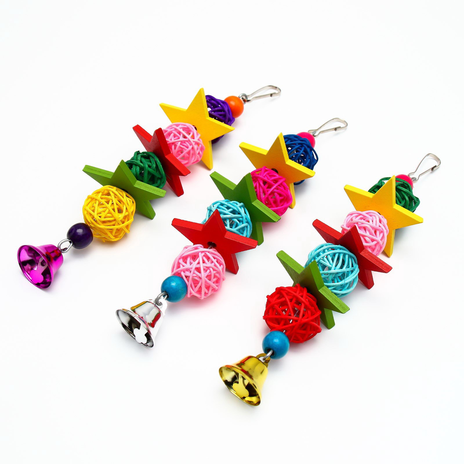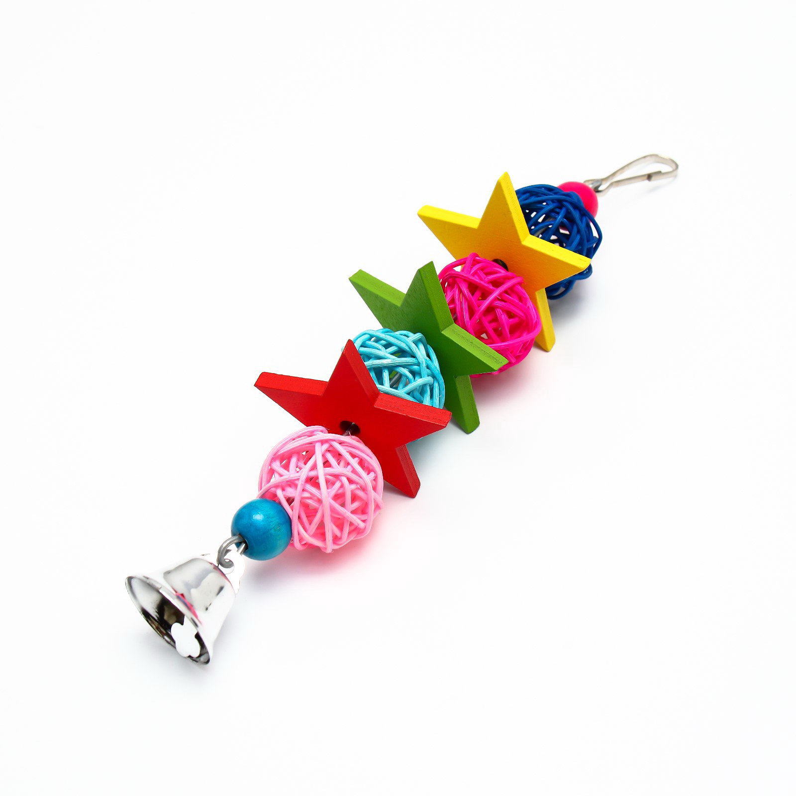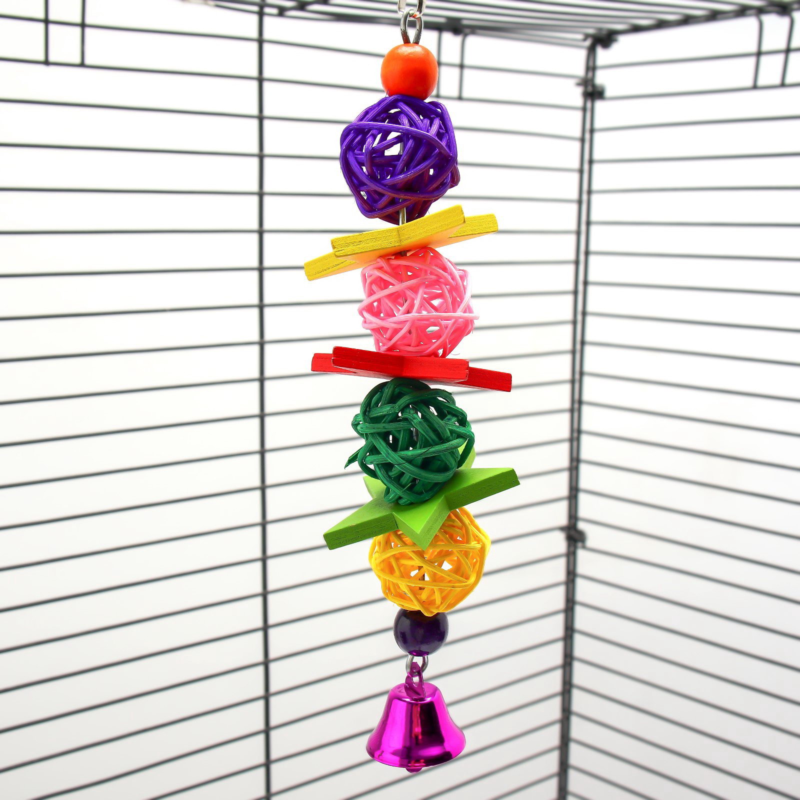 Игрушка для птиц, мячики такрау с колокольчиком и бусинам, микс цветов, Пижон, Китай