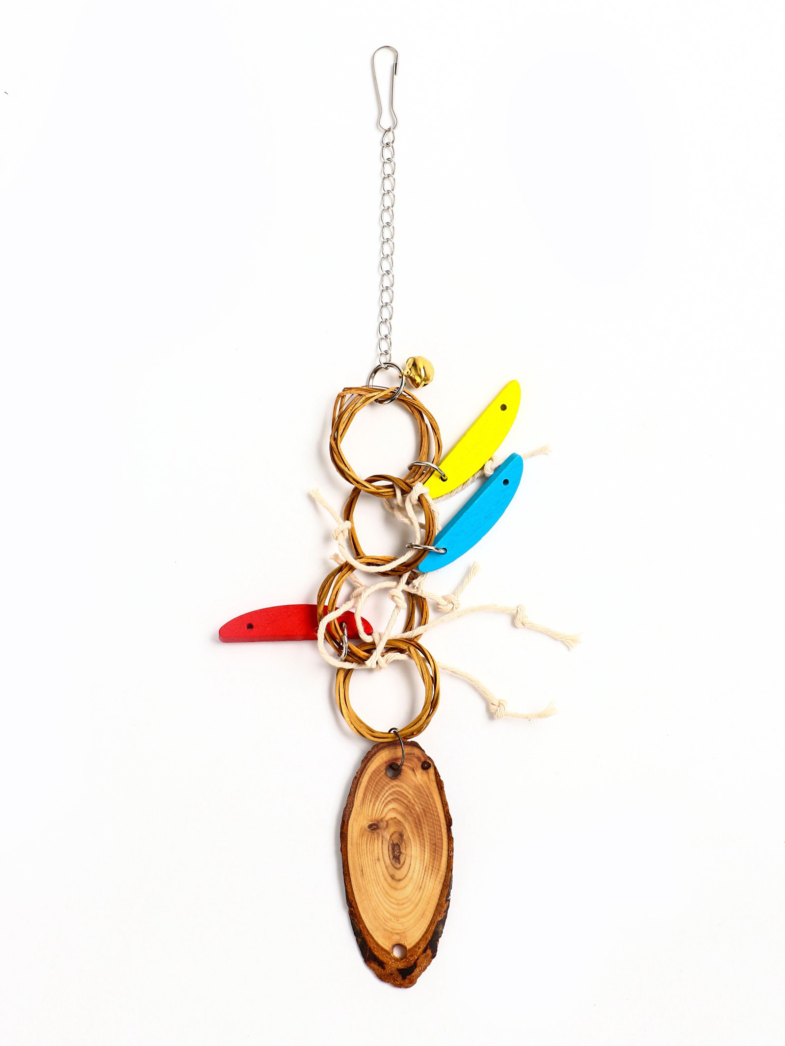 Размер упаковки: 6 x 2 x 15 см. tnved: 7326200000 Температурное ограничение: Нет С колокольчиком: Нет Игра без правил только цвет, форма и движение. Цветная игрушка для птиц без звука выбор для тех, кто ценит визуальное разнообразие, но хочет избежать лишнего шума. Подходит попугаям, волнистым, неразлучникам и другим любопытным обитателям клетки, которым важно, чем занять клюв и лапы.