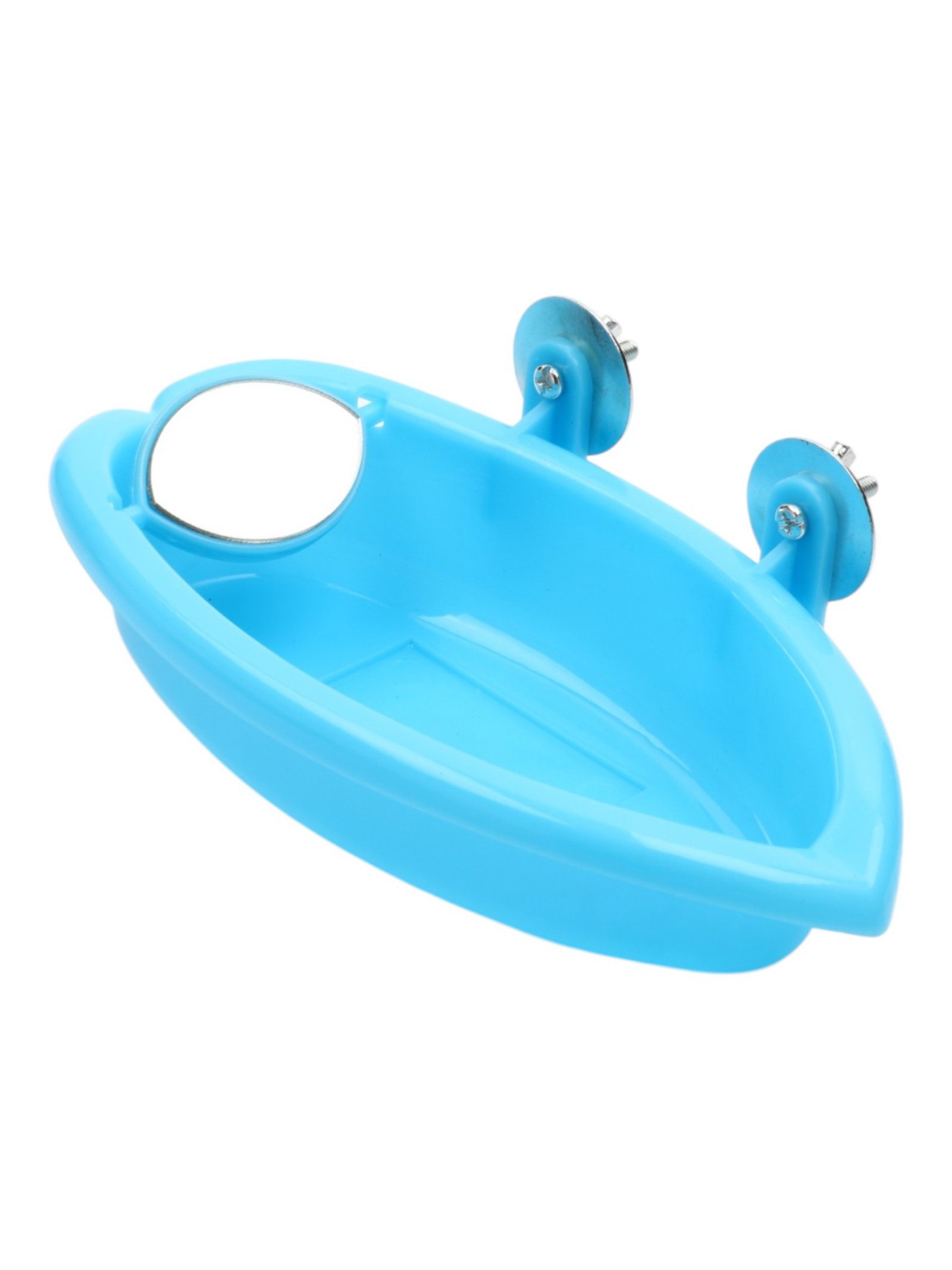 Ванночка-купалка для птиц "Лодочка", 18.5x9.5x4 см, с зеркалом, голубая, 9.5x18.5x4 см., Пижон, Китай