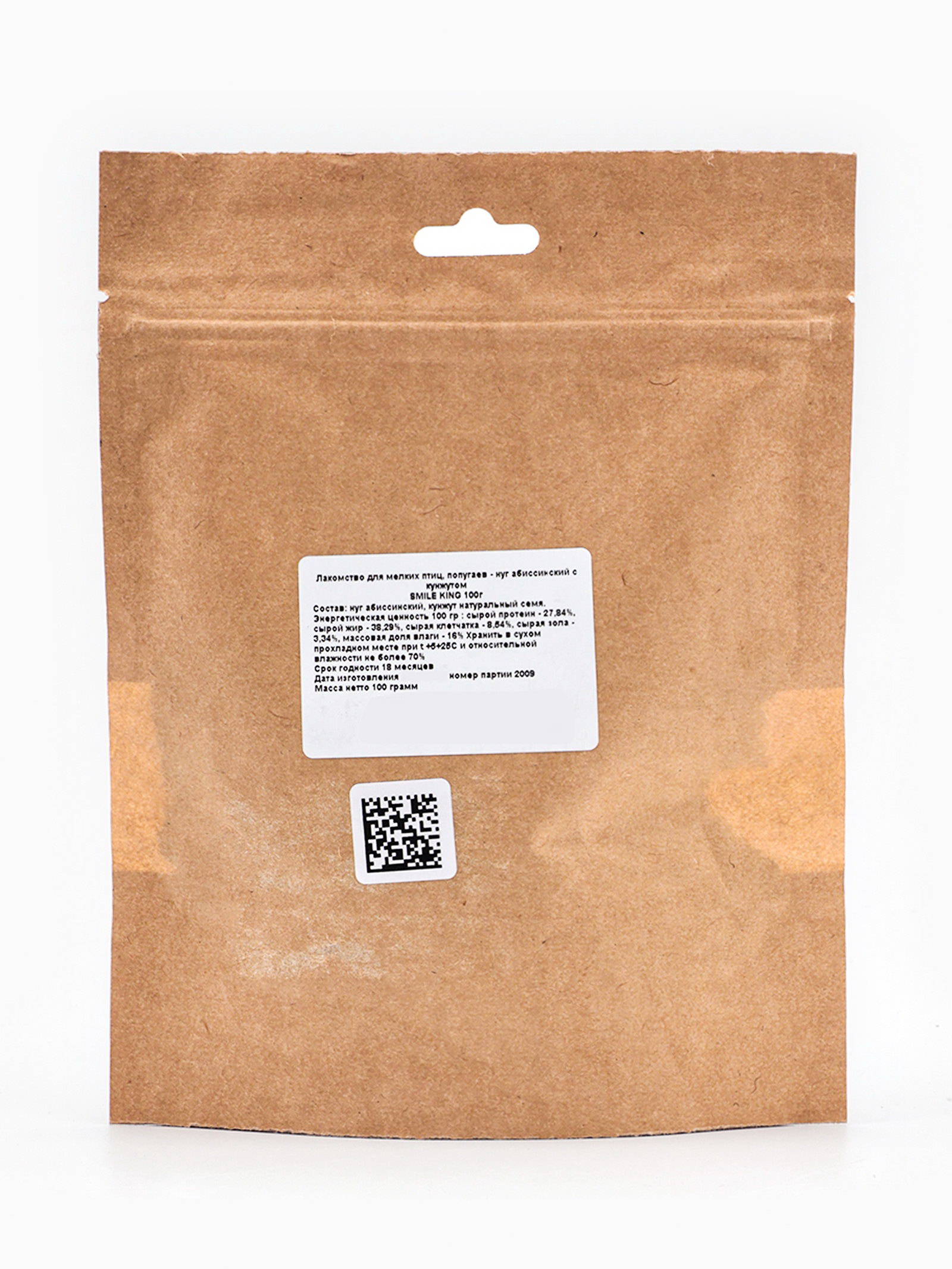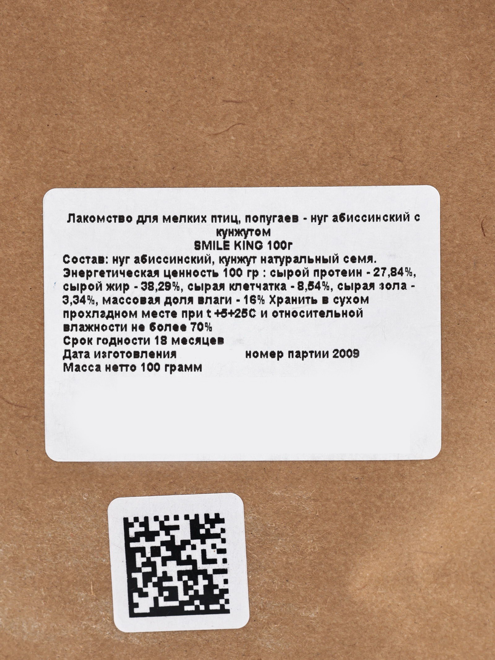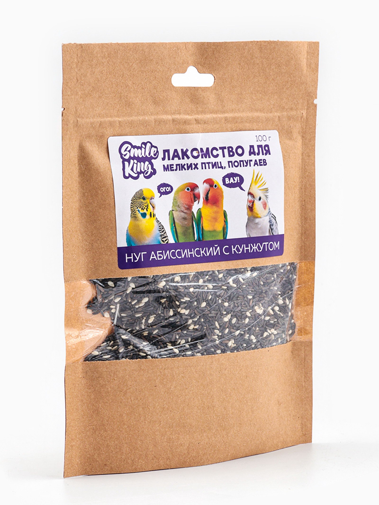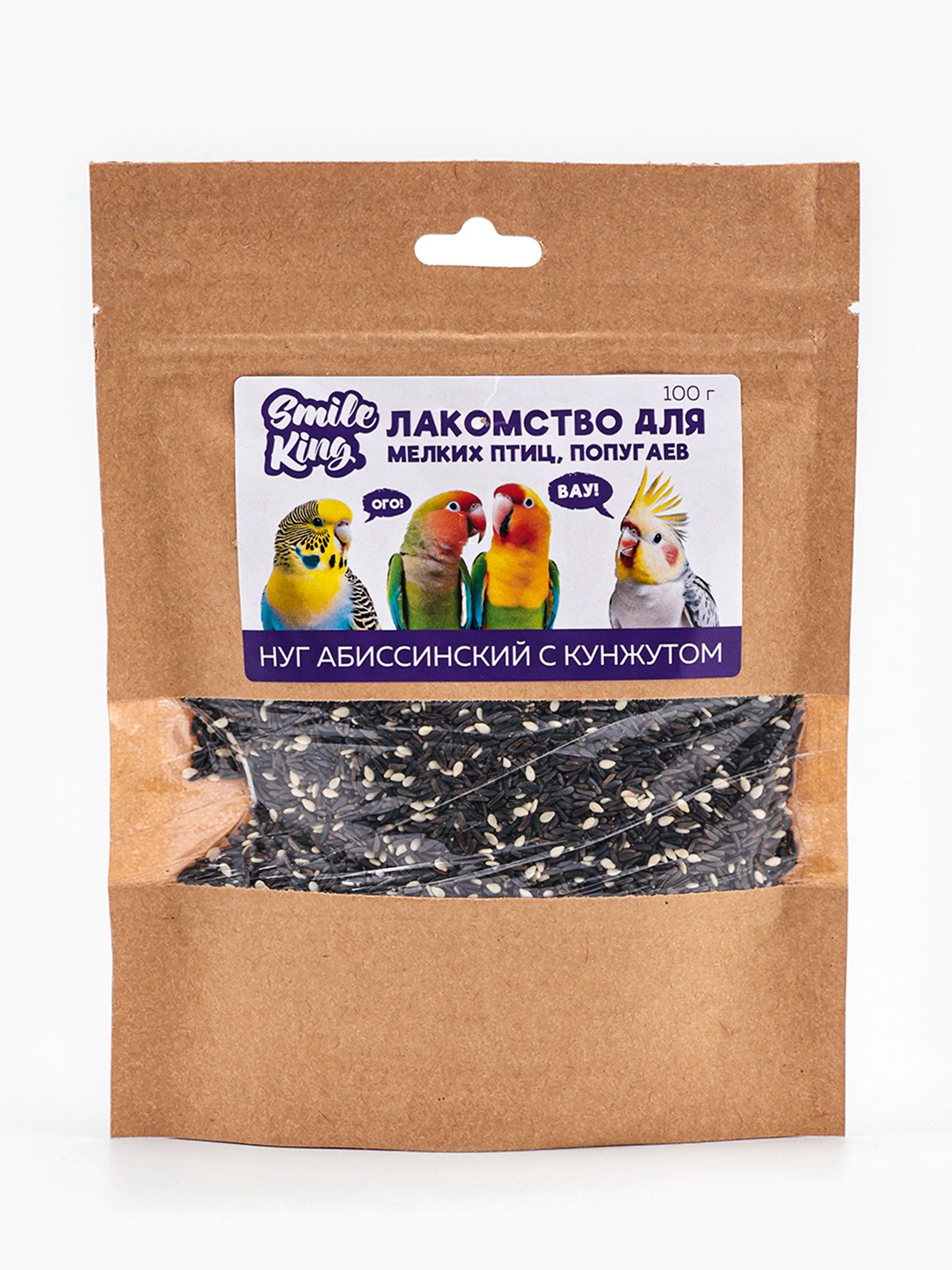 Лакомство для мелких птиц, попугаев, нуг абиссинский с кунжутом, 100 г, Smile King, Беларусь