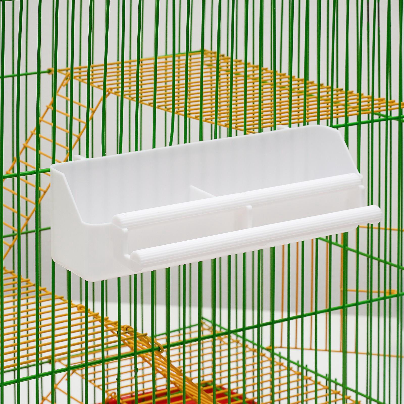 Кормушка для птиц, 21x5.8x5.6 см, с жёрдочкой для любых клеток, пластик, белая, 5.8x21x5.6 см., Пижон, Китай