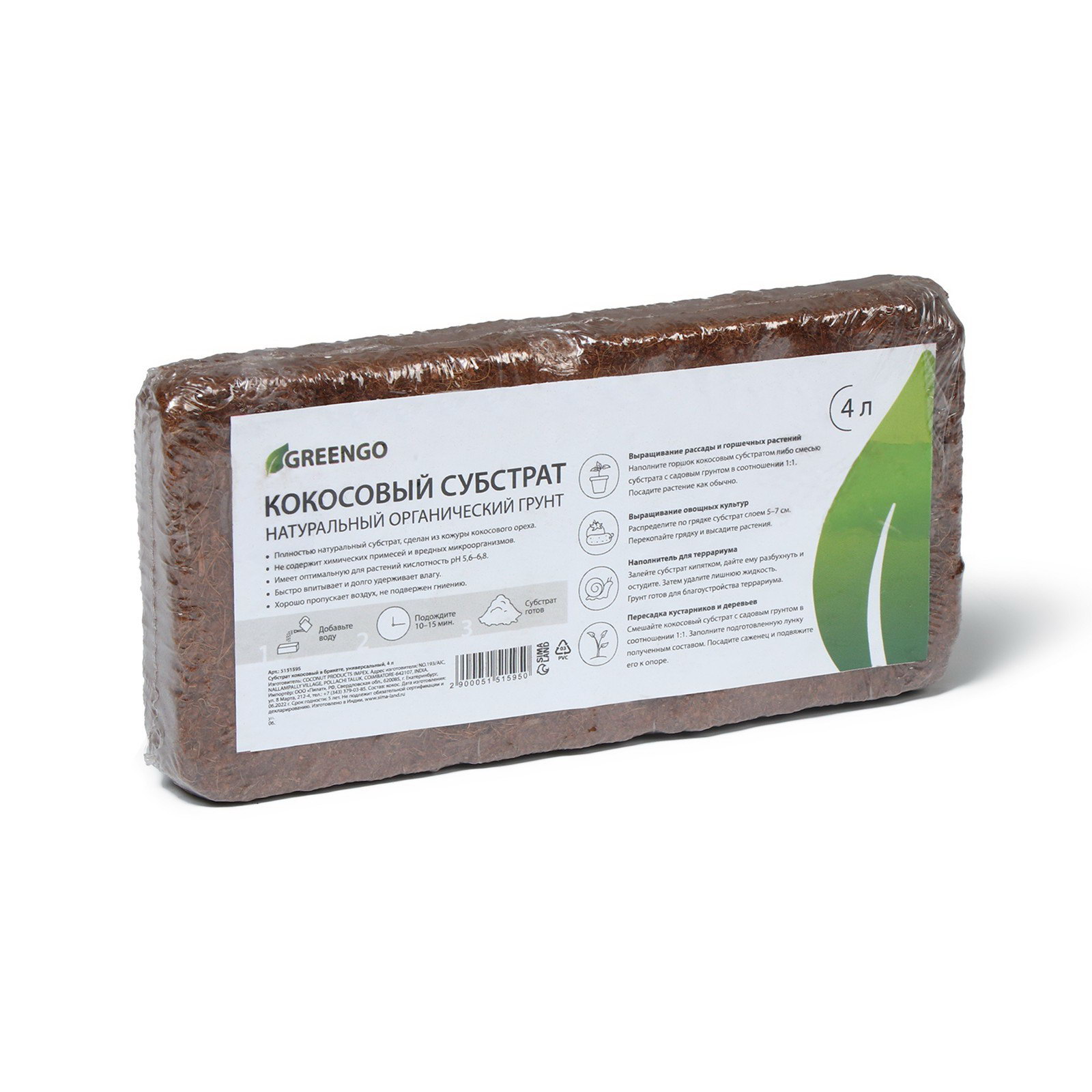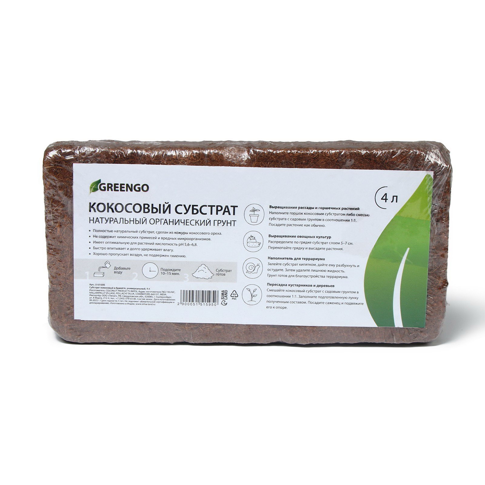 Субстрат кокосовый, универсальный, для террариумов и растений, в брикете, 4 л, 10x20x3 см., Greengo, Индия