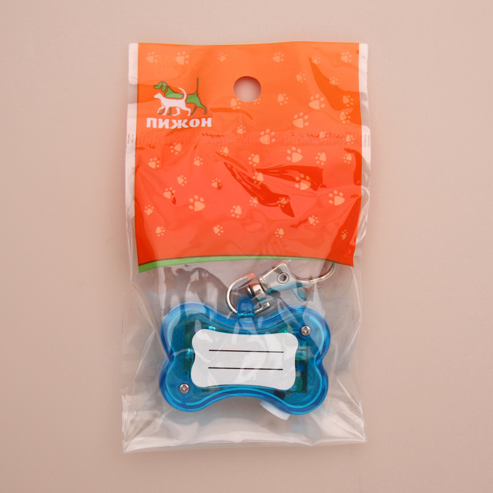 Маячок-адресник "Косточка" с наклейкой под записку 3 режима свечения голубой, 4.7x6.5x1.4 см., Пижон, Китай