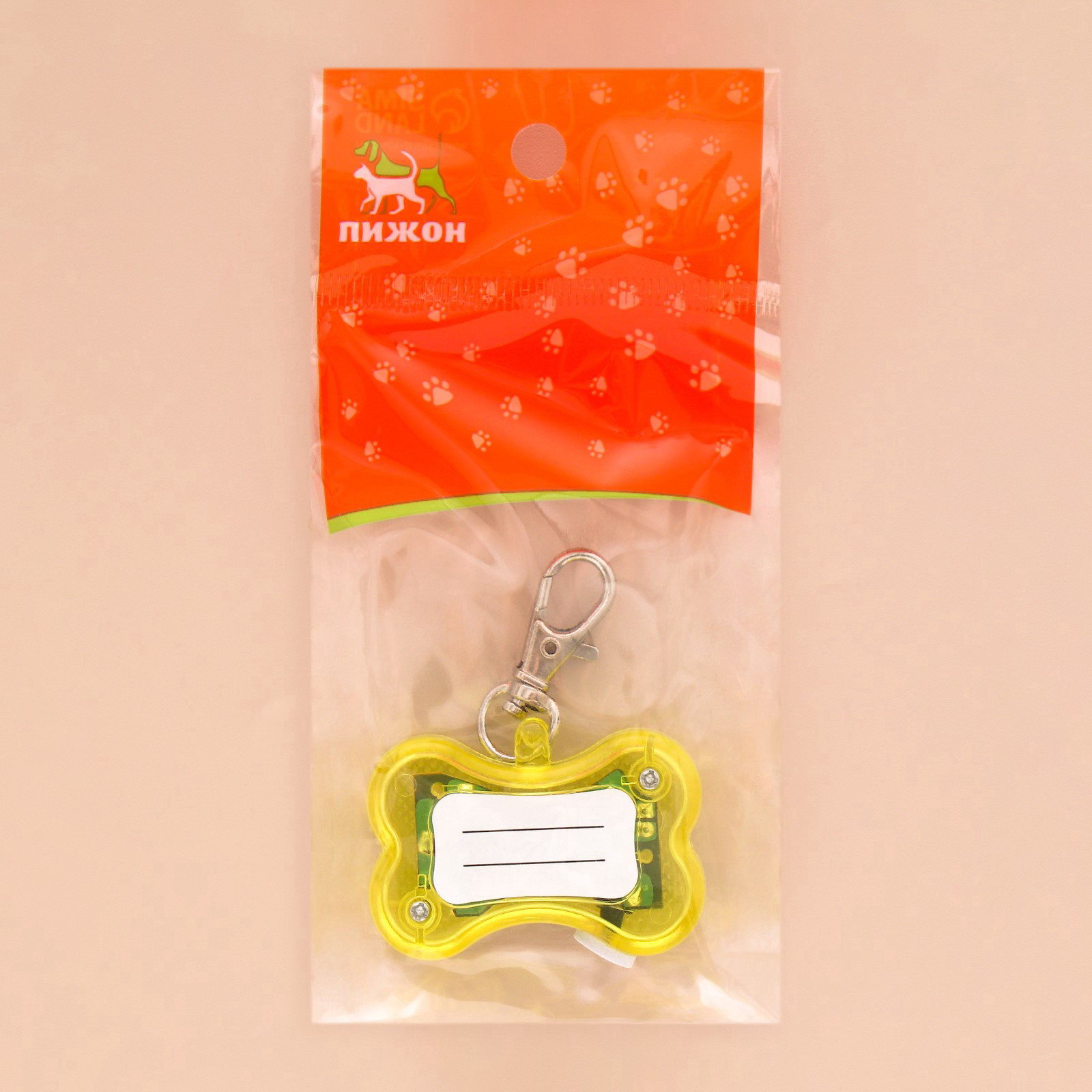 Маячок "Косточка" с наклейкой для записи телефона, 3 режима свечения, жёлтый, 4.7x6.5x1.4 см., Пижон, Китай