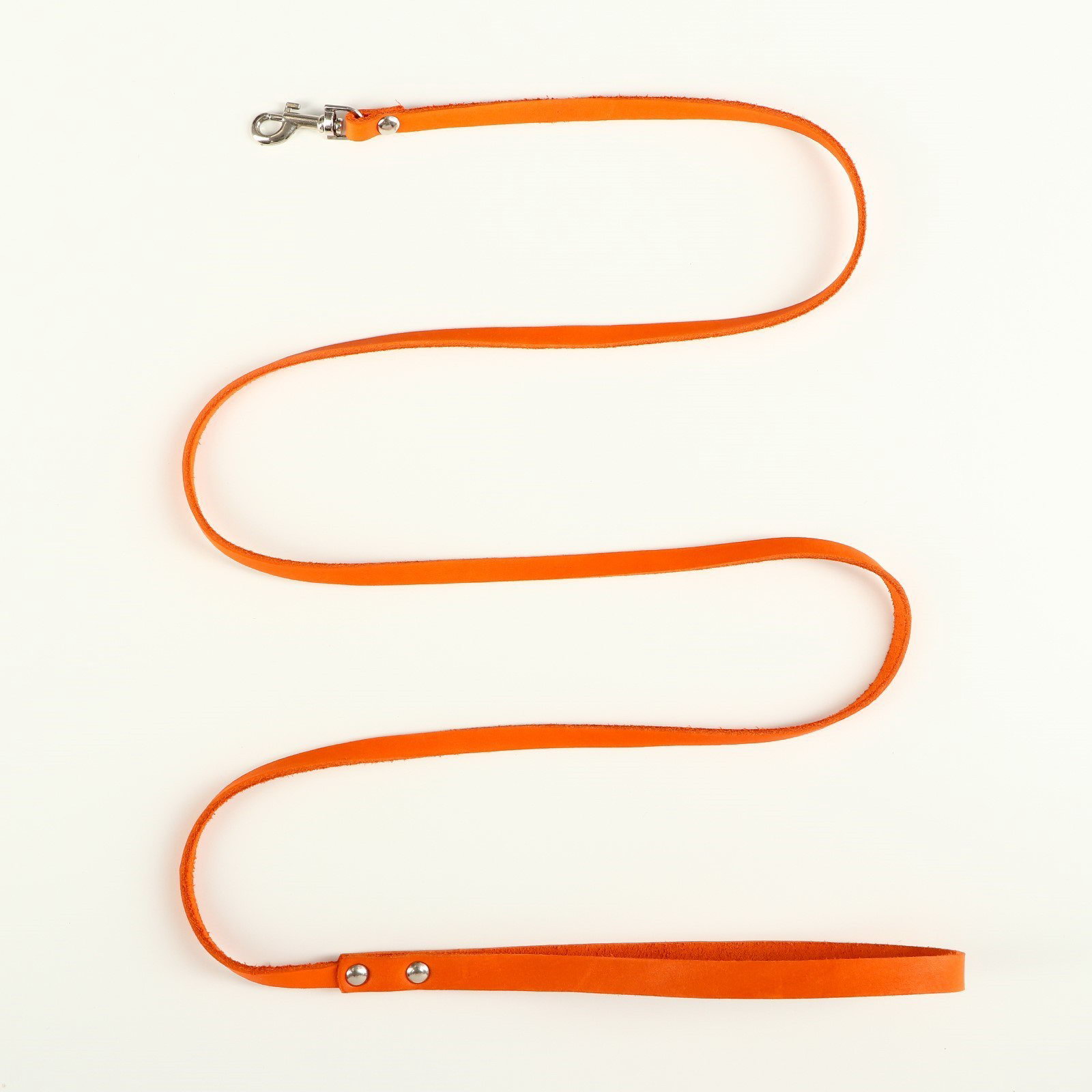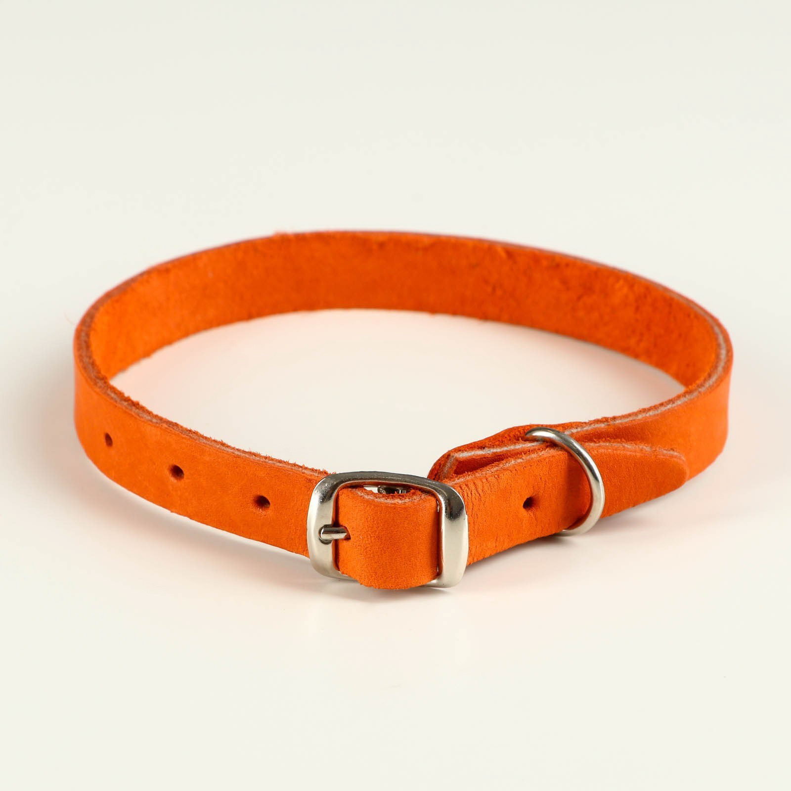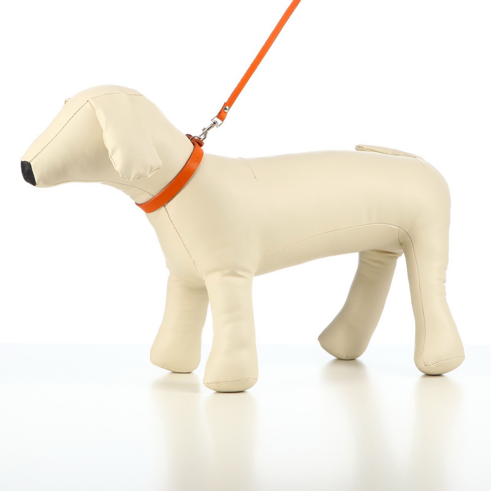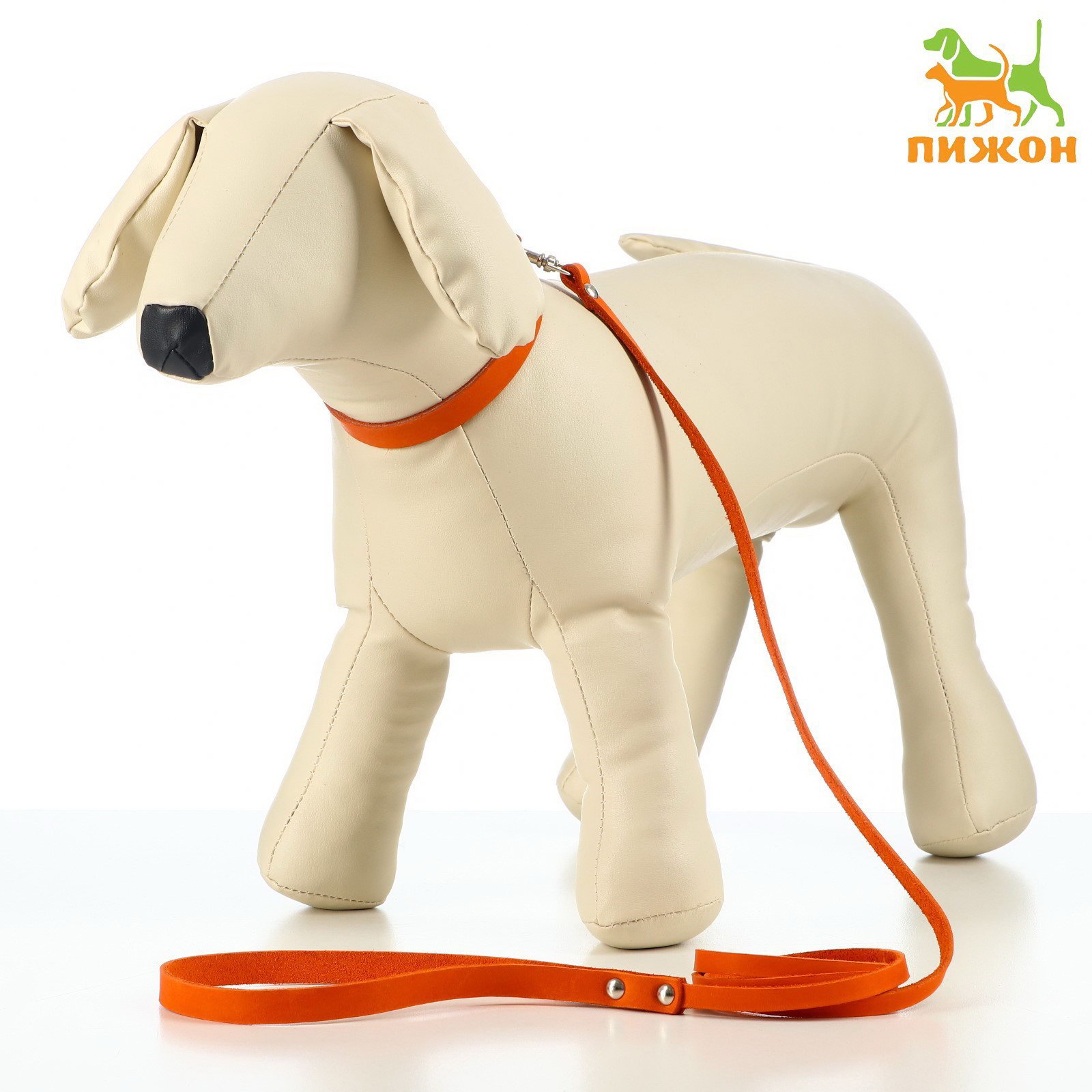 Комплект кожаный ошейник 35x1.2 см и поводок 135x0.8 см, рыжий, Пижон, Россия