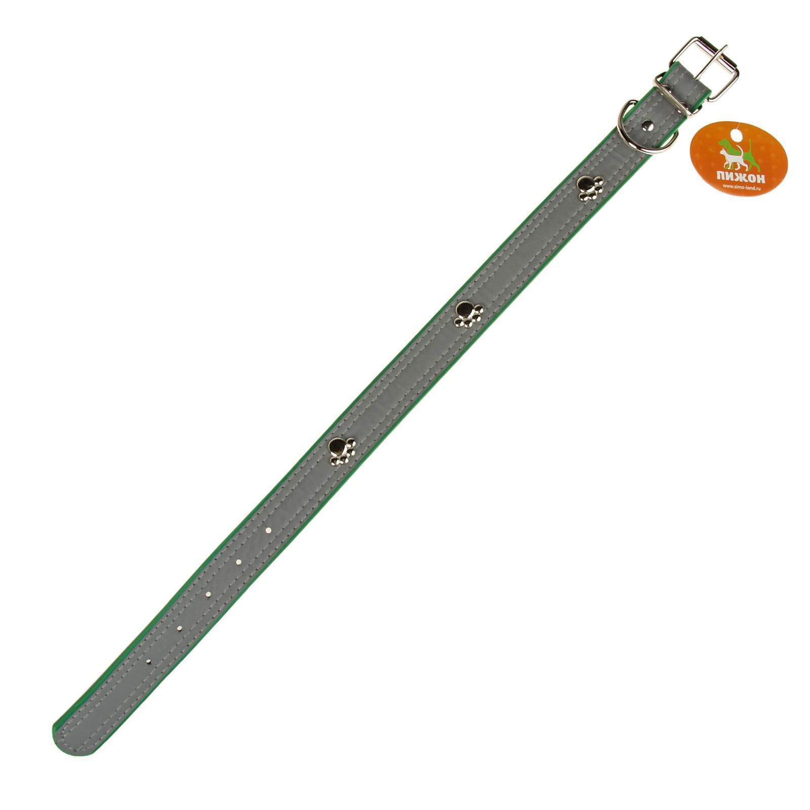 Ошейник "Лапки", 69x3 см, искусственная кожа, зелёный, 3x70x1.5 см., Пижон, Китай