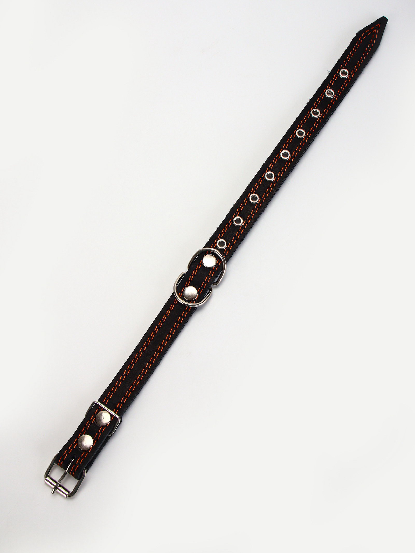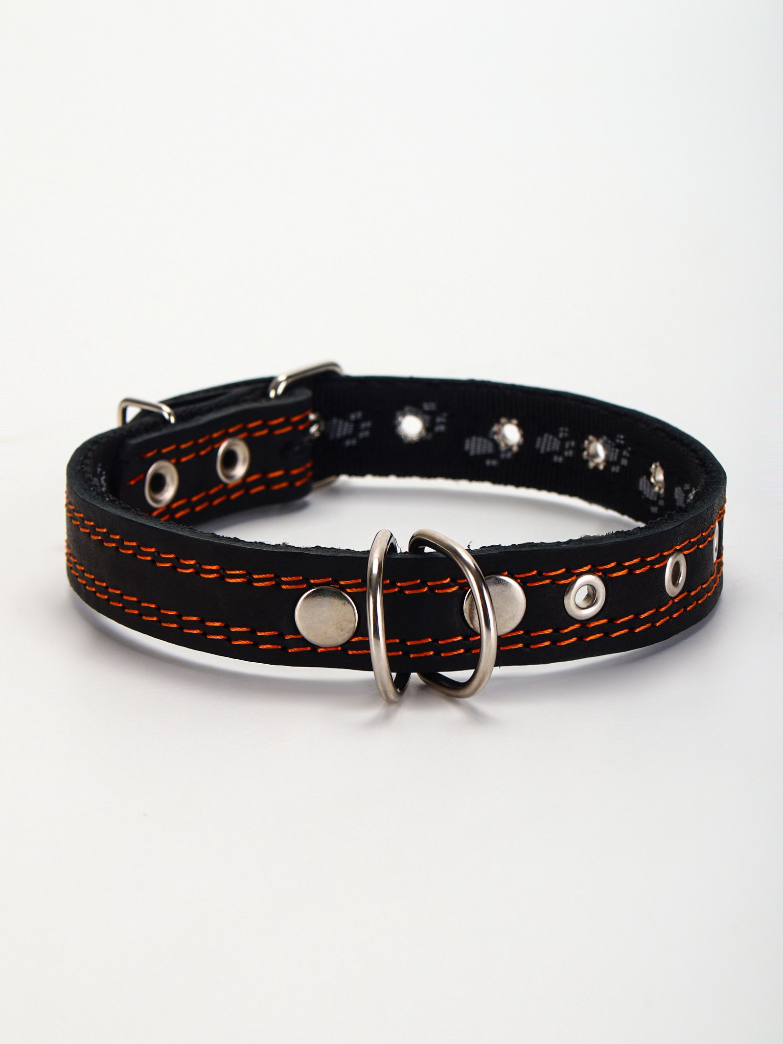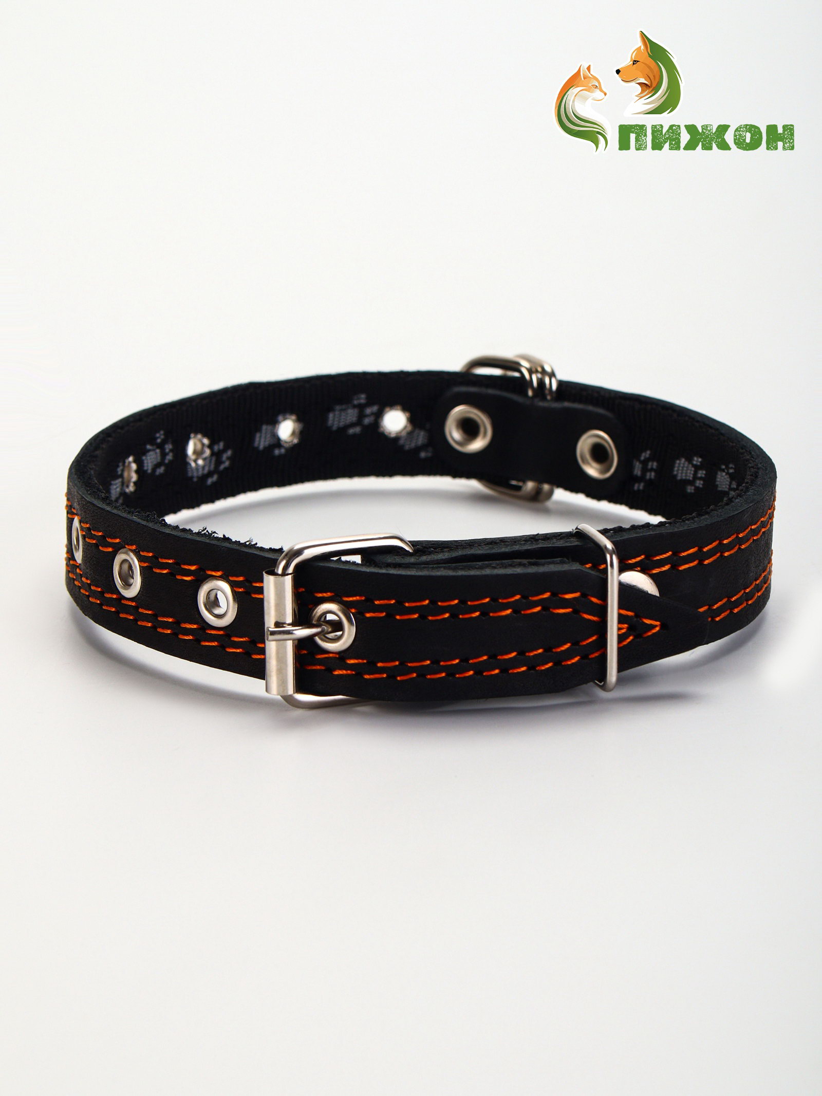 Ошейник кожаный усиленный капроном с полукольцом, 55x2.5 см, ОШ 27-53 см, чёрный, Пижон, Россия