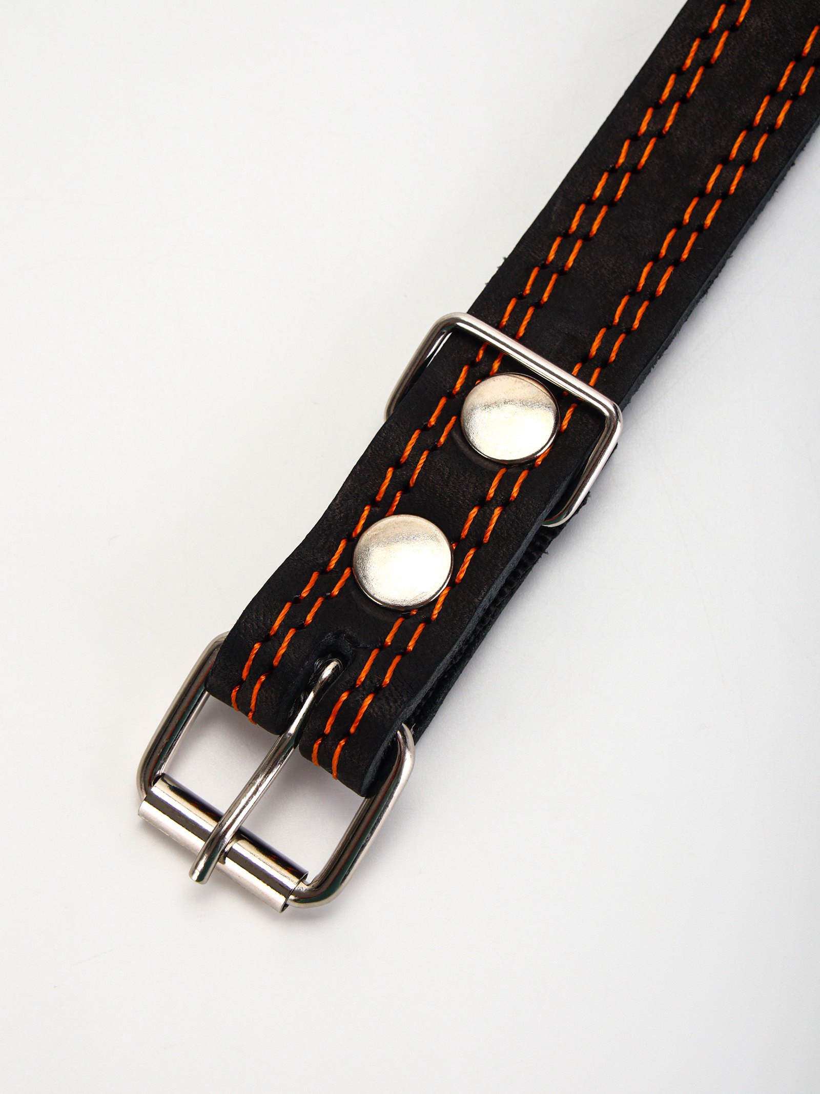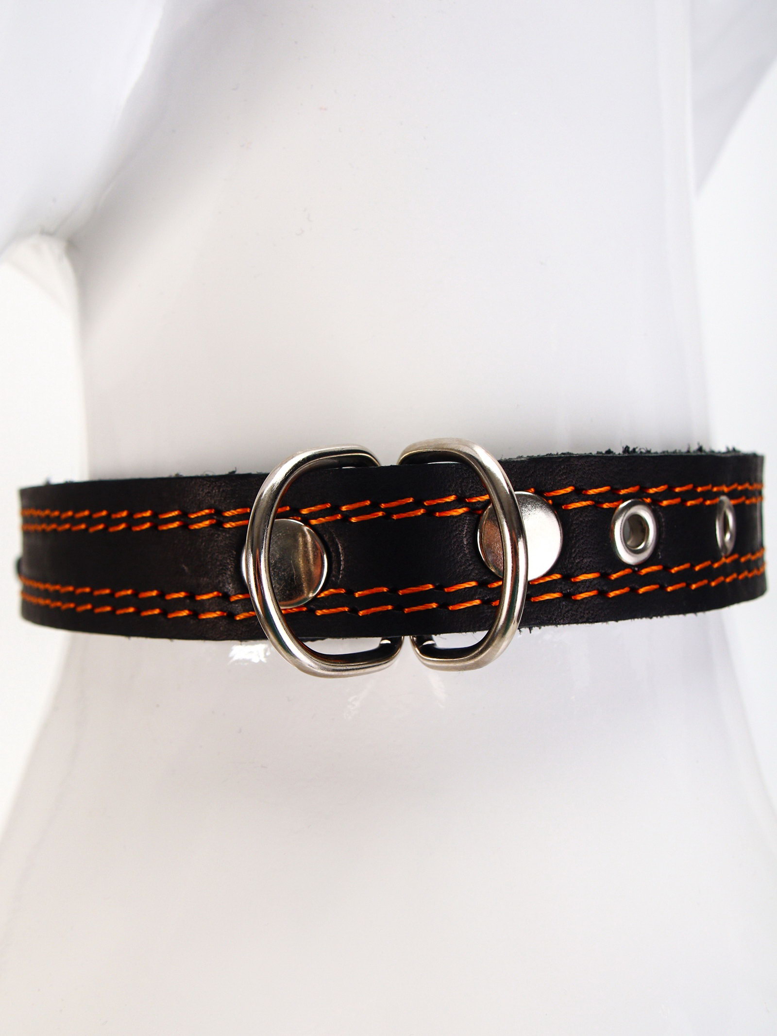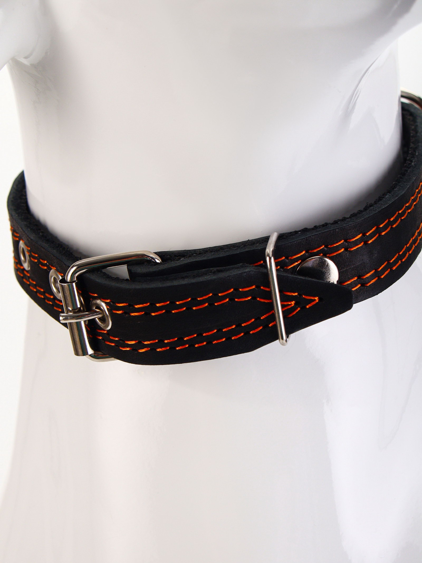 Ошейник кожаный усиленный капроном с полукольцом, 55x2.5 см, ОШ 27-53 см, чёрный, Пижон, Россия