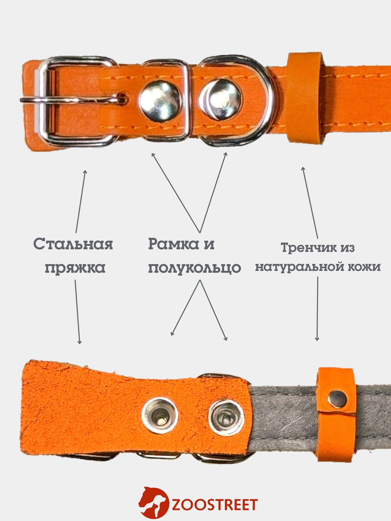 Ошейник, 50x2.5 см, подклад из ватина, кожа, оранжевый, Zoostreet, Россия