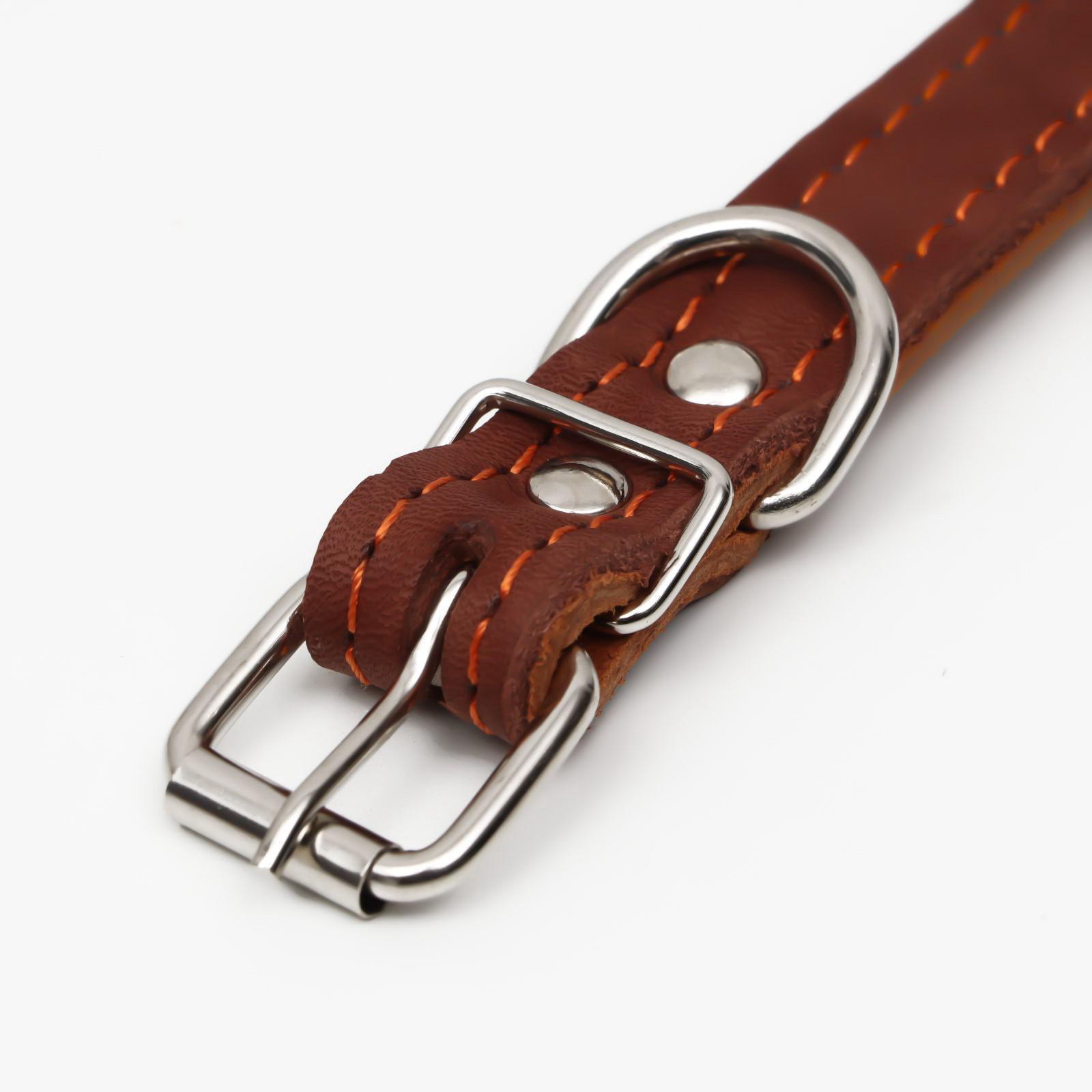 Ошейник кожаный двухслойный, 46x2 см, ОШ 25-35 см, коричневый, Пижон, Россия