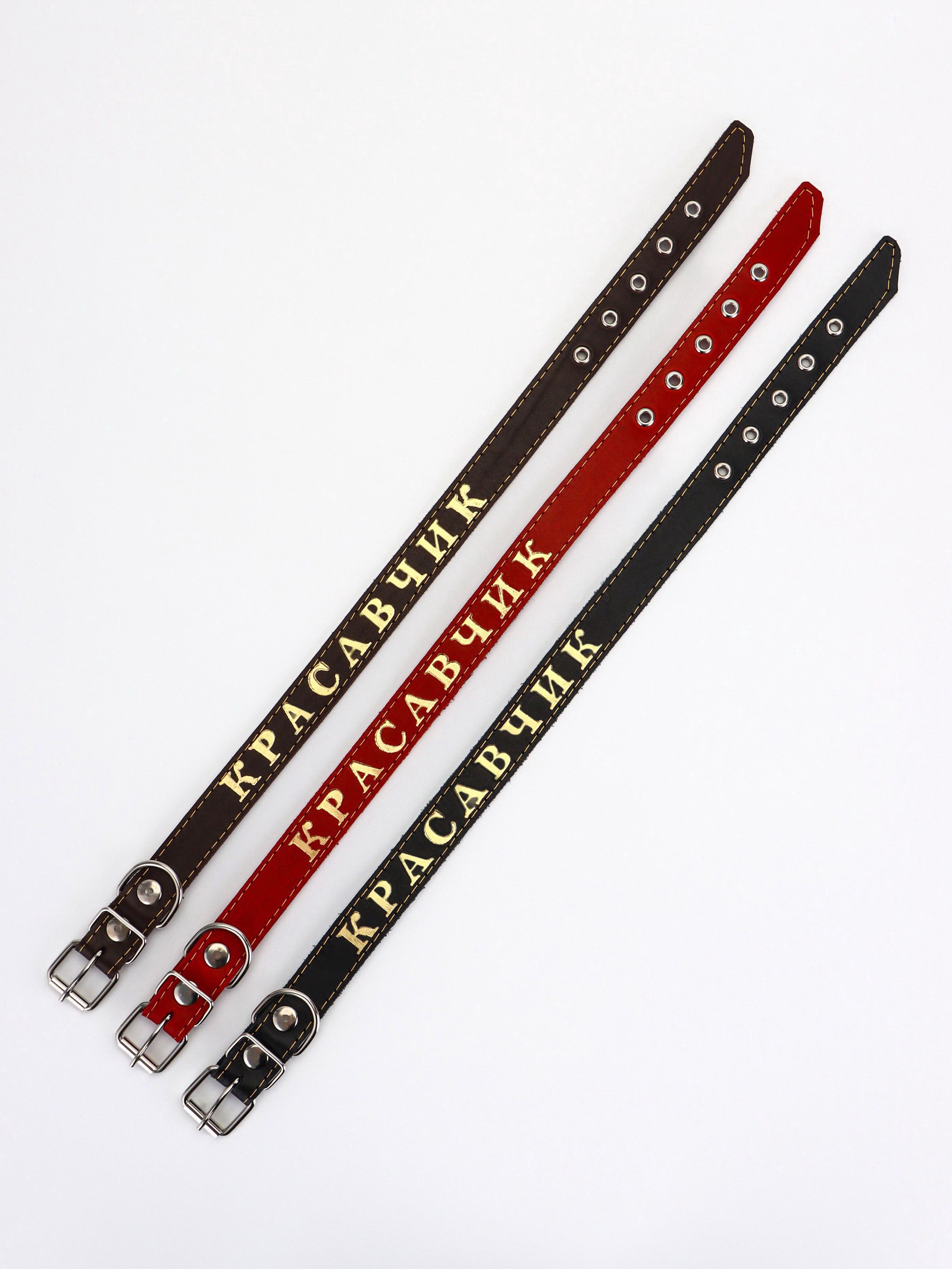 Ошейник "Красавчик", 60x2.5 см, однослойный, тиснение фольгой, кожа, цвет МИКС, Пижон, Россия