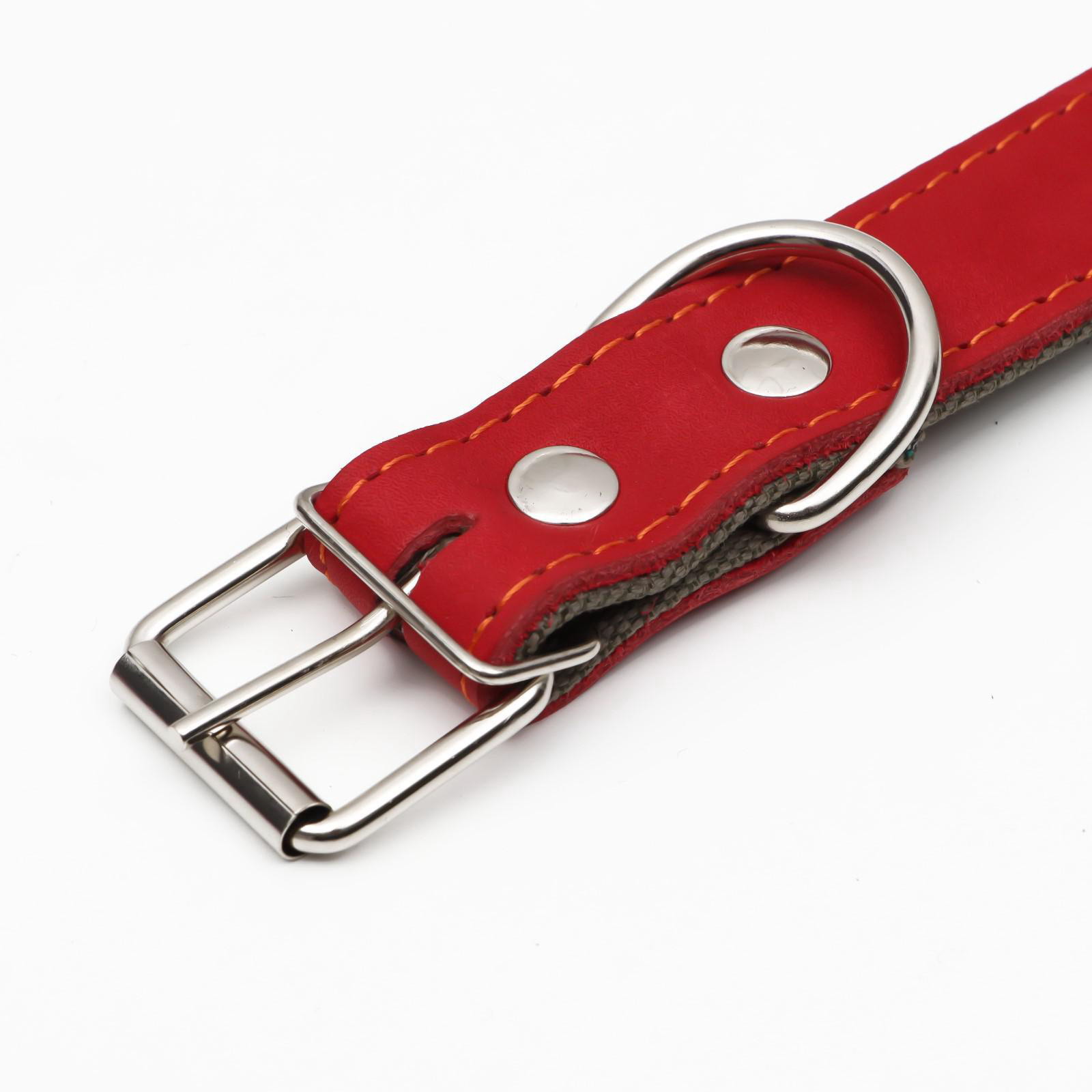 Ошейник комбинированный кожа/брезент, безразмерный, 70 x 3.5 см, ОШ 25-60 см, красный, Пижон, Россия