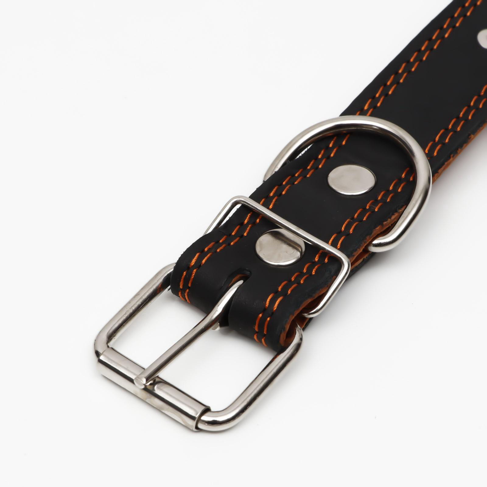 Ошейник кожаный "Строгий шип", 70x3.5 см, ОШ 45-60 см, чёрный, Пижон, Россия