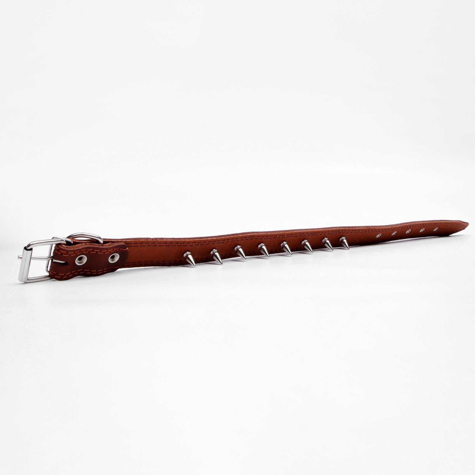 Ошейник "Строгий шип", 70x3.5 см, ОШ 45-60 см, кожа, коричневый, Пижон, Россия