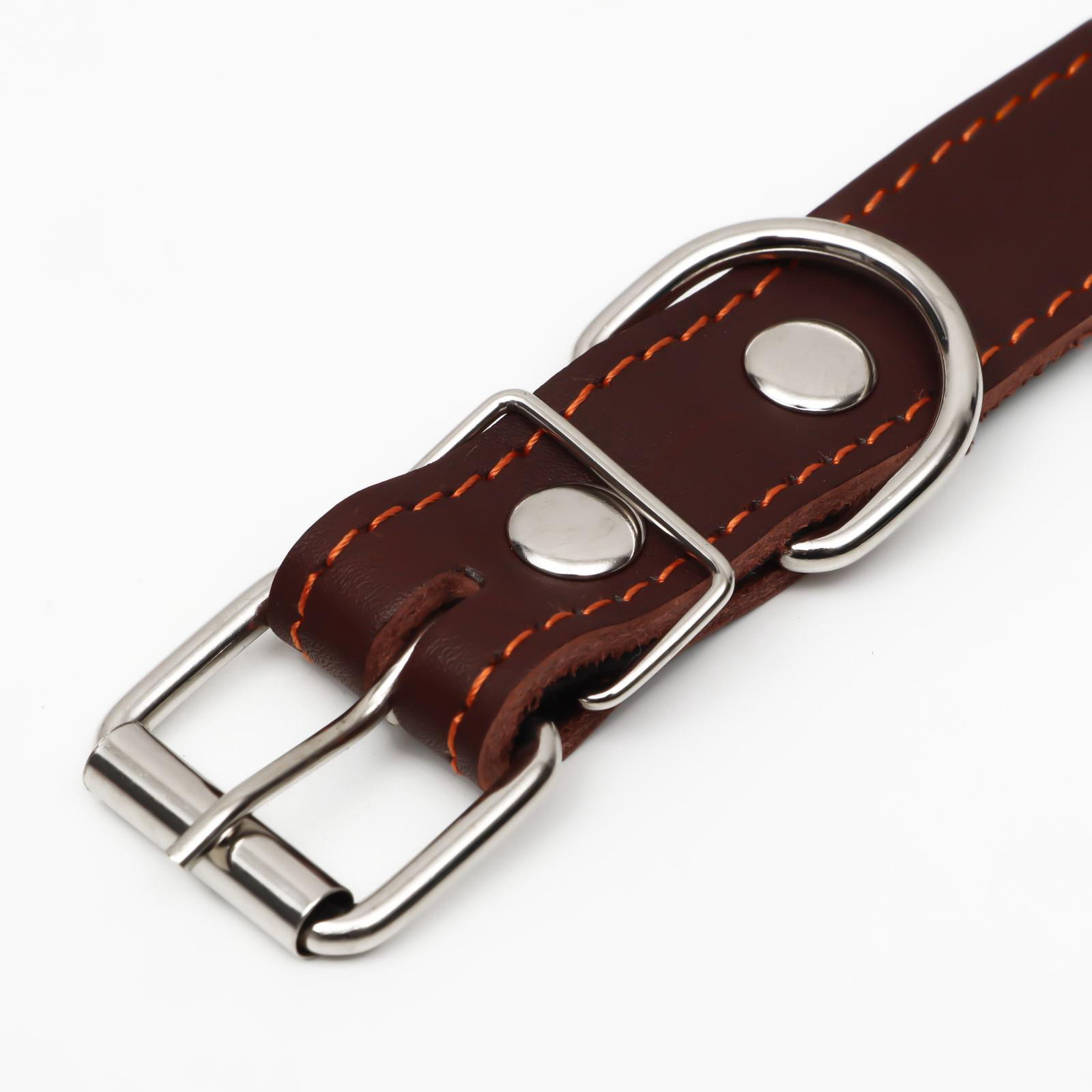 Ошейник кожаный на синтепоне, безразмерный, 65x3 см, ОШ 22-55 см, коричневый, Пижон, Россия
