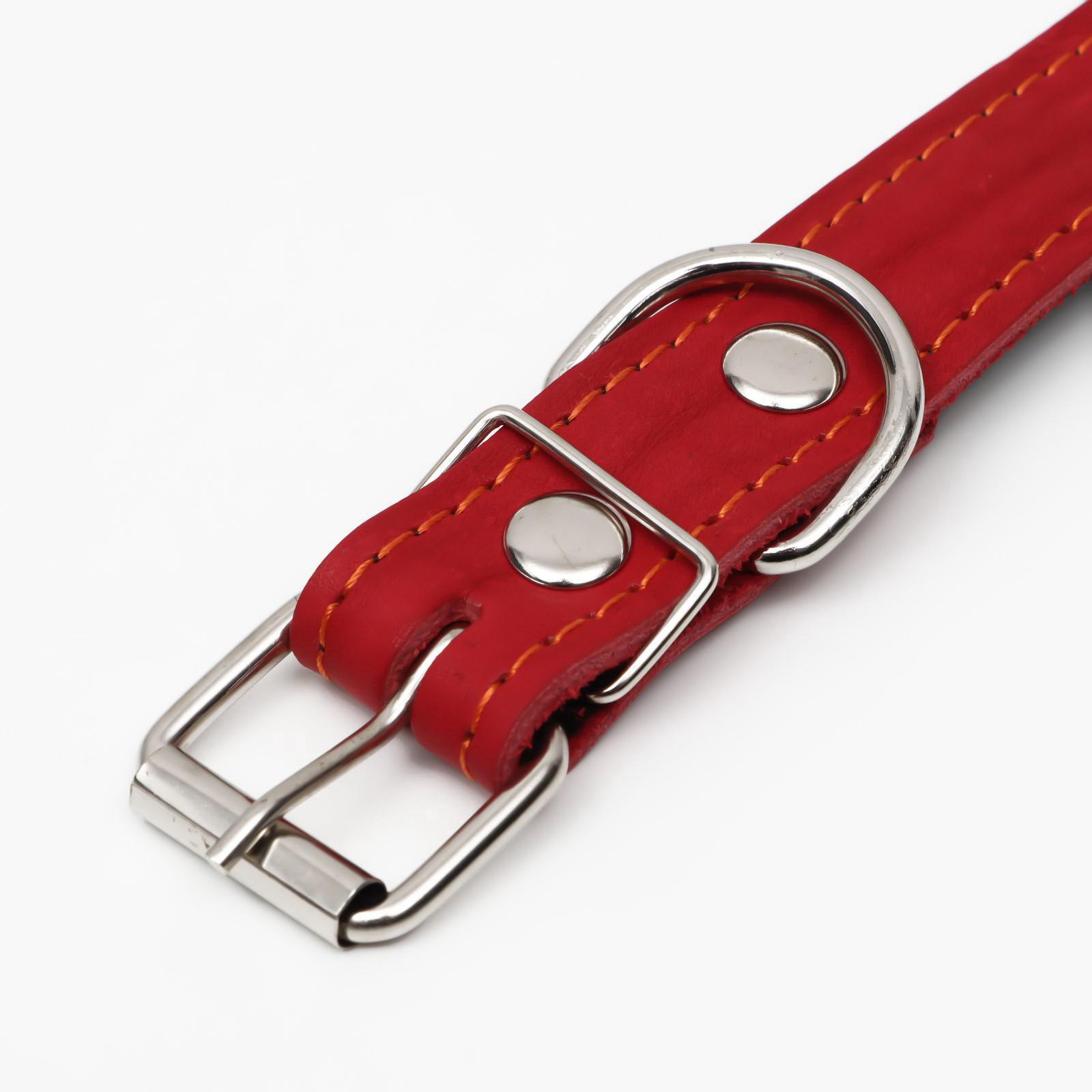 Ошейник кожаный на синтепоне, безразмерный, 65x3 см, ОШ 22-55 см, красный, Пижон, Россия