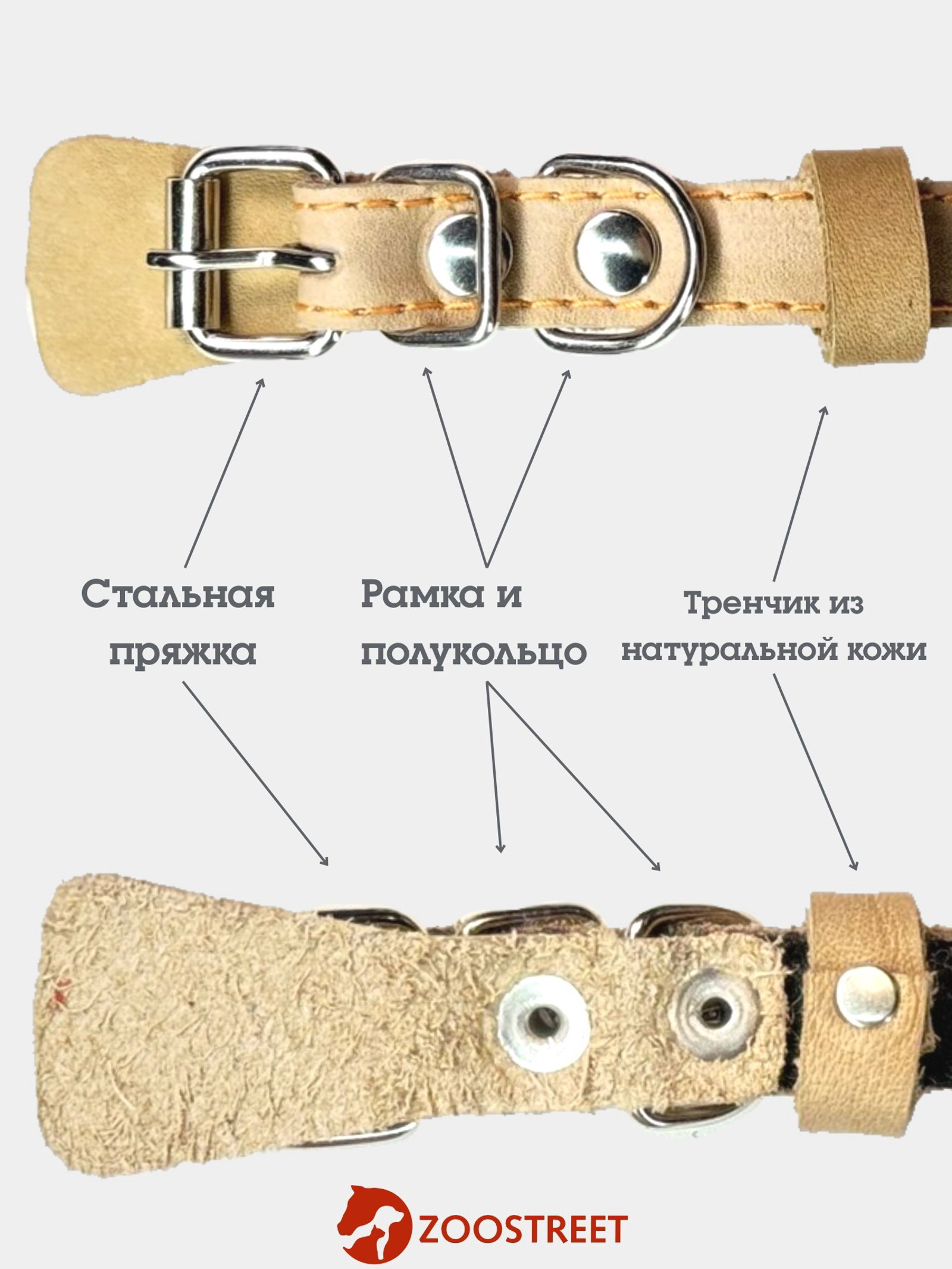 Ошейник, 35x1.5 см, подклад из ватина, кожа, бежевый, Zoostreet, Россия