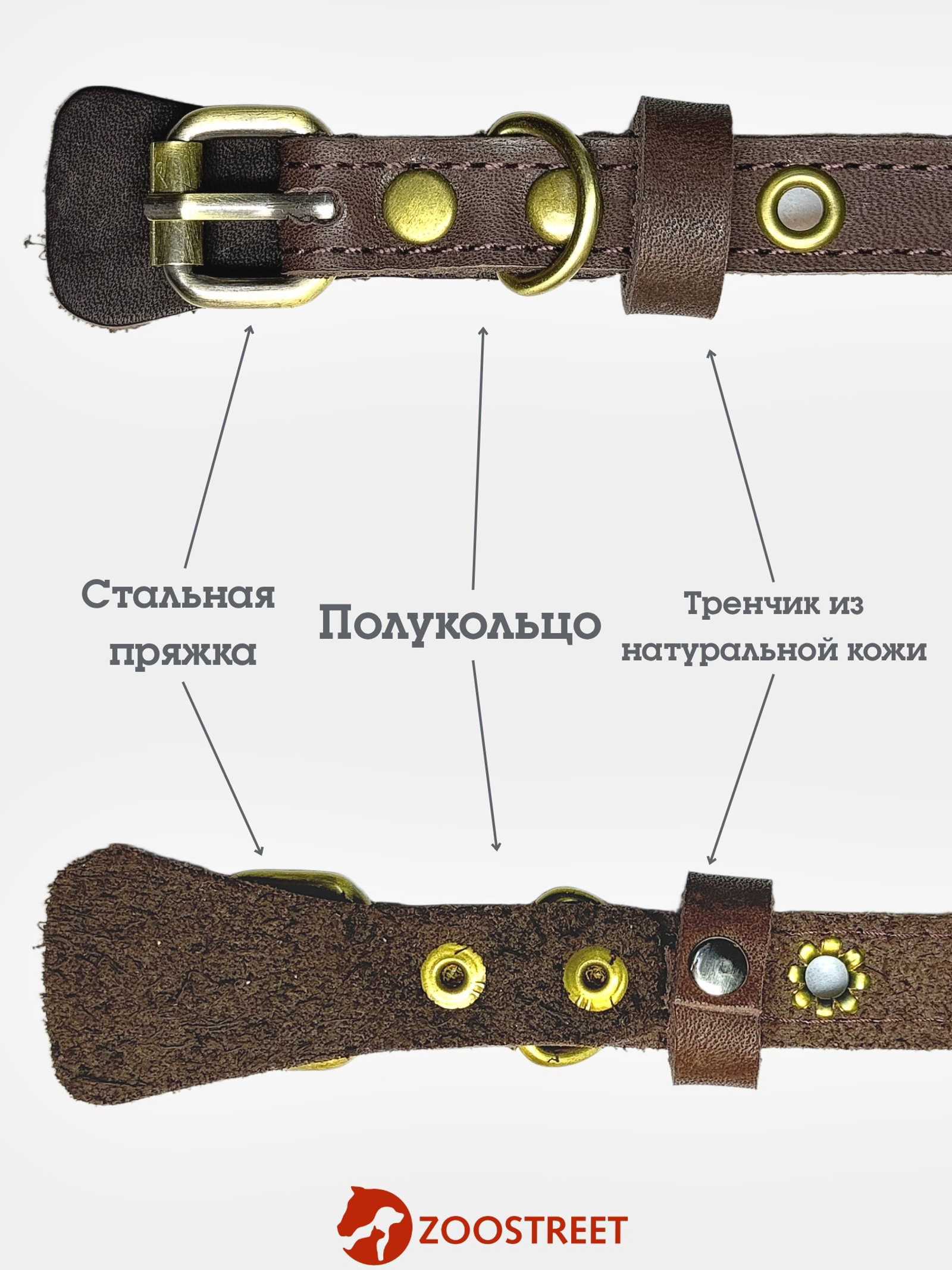 Ошейник безразмерный, 35x1.5 см, с подпряжником, кожа, коричневый, Zoostreet, Россия