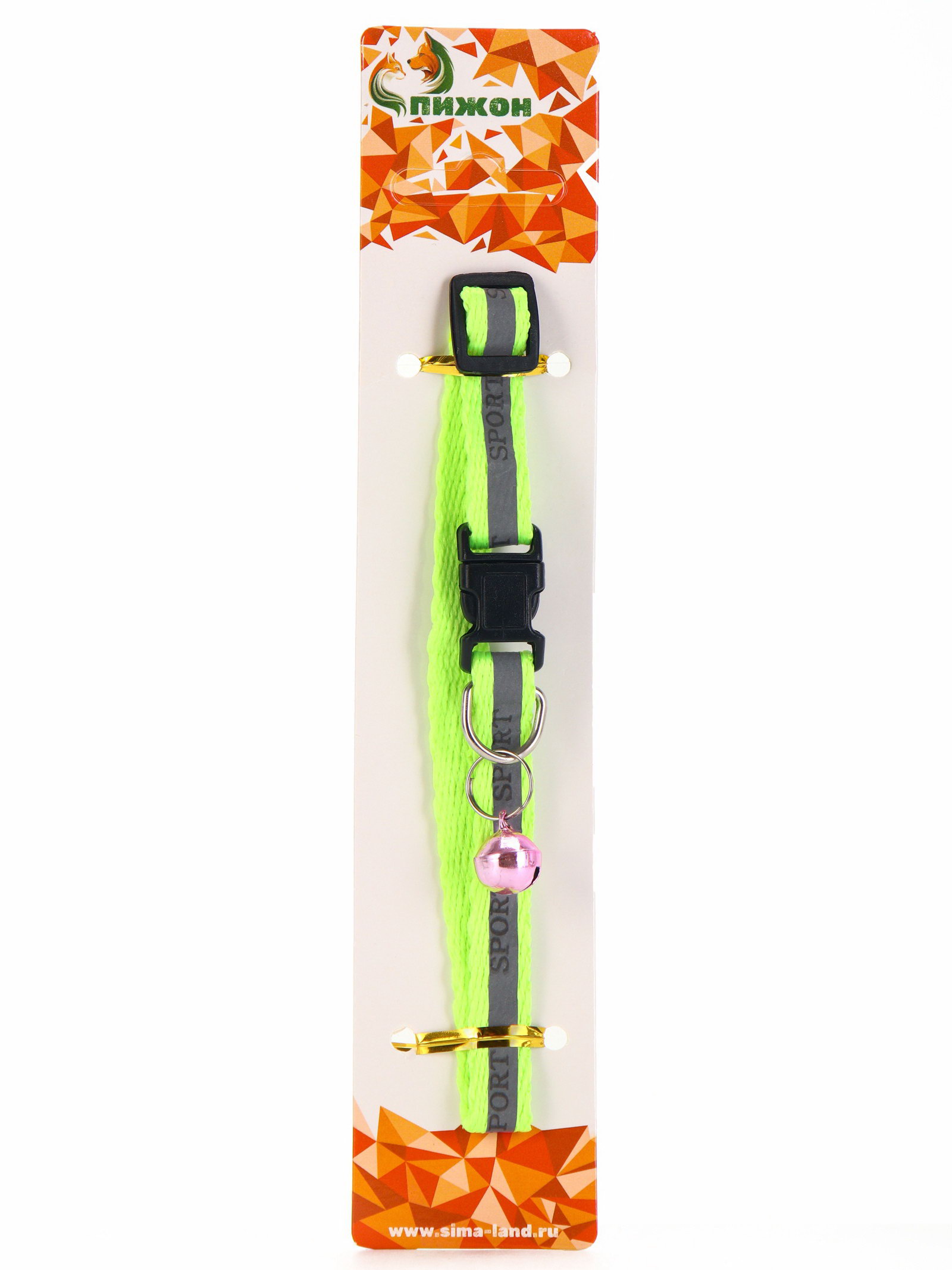 Ошейник "Спорт" со светоотражающей полосой, 31x1 см, зелёный, 1x31x1 см., Пижон, Китай