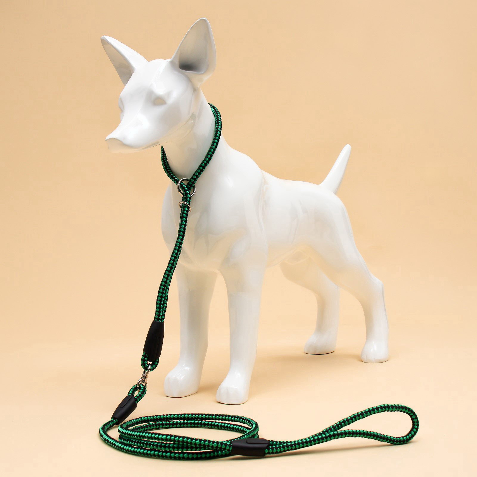 Ринговка для собак, с вертлюгом, 150x0.6 см, чёрная/зелёная, Пижон, Китай