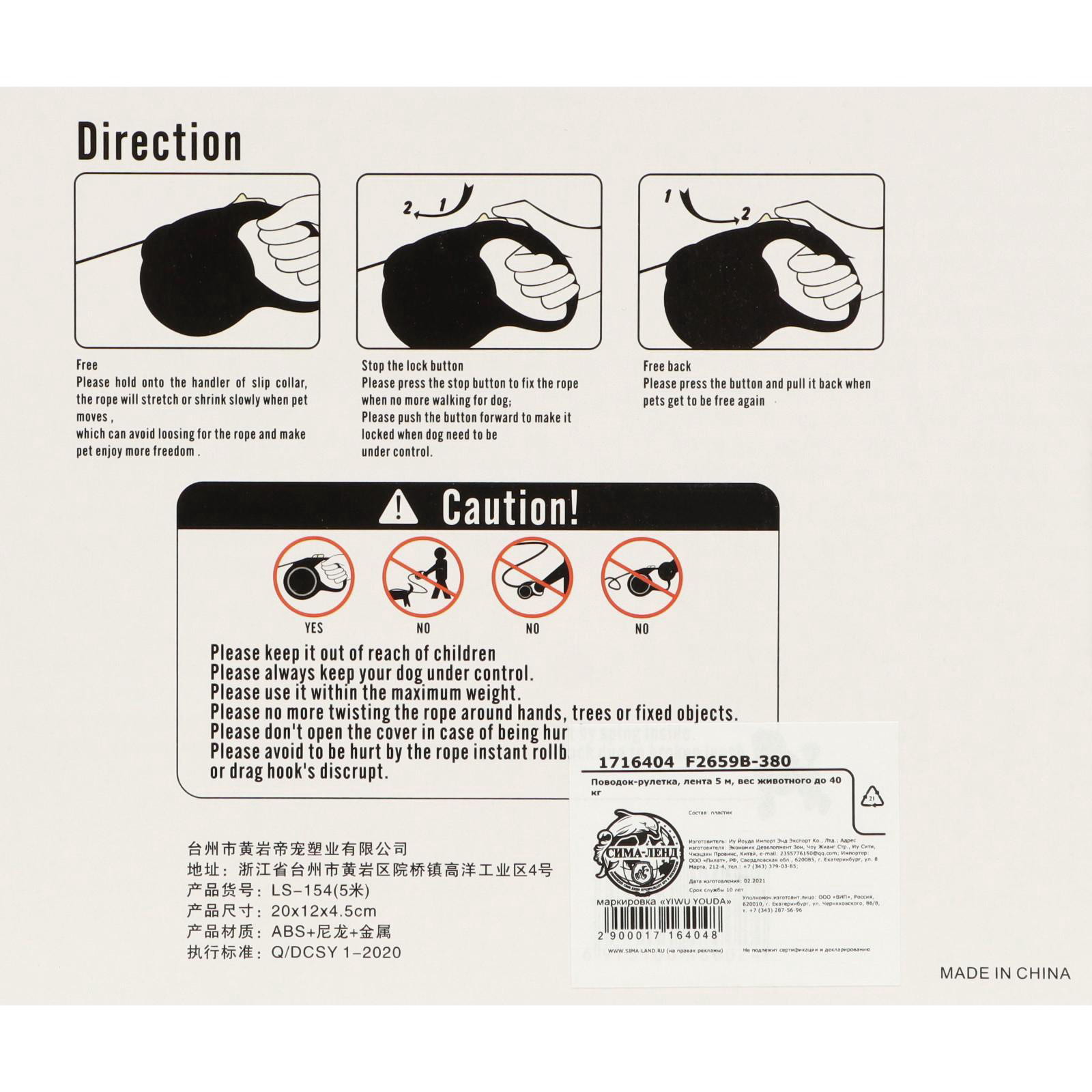 Цвет: Белый, Чёрный Размер упаковки: 12 x 3.5 x 20 см. Вид поводка: Лента Дополнительные функции: Прорезиненная ручка Длина поводка, м: 5 Максимальный вес животного, кг: 40 tnved: 4201000000 Длина, м: 5 Рулетка DIIL - это надежный и удобный инструмент для прогулок вашей собаки. Она имеет длину 5 метра и подходит для собак весом до 40 кг. Рулетка DIIL оснащена прорезиненной ручкой, которая обеспечивает удобный и надежный захват. Рулетка имеет прочный пластиковый корпус, который обеспечивает надежность и долговечность при использовании. Лента, которая находится внутри корпуса, предотвращает запутывание и очень прочная, что позволяет контролировать движения вашей собаки. Рулетка DIIL оснащена стоп-механизмом, который позволяет легко остановить рулетку и контролировать движения вашей собаки. Это позволяет защитить ее от опасных ситуаций на улице и обеспечить ваш комфорт во время прогулки. | ||