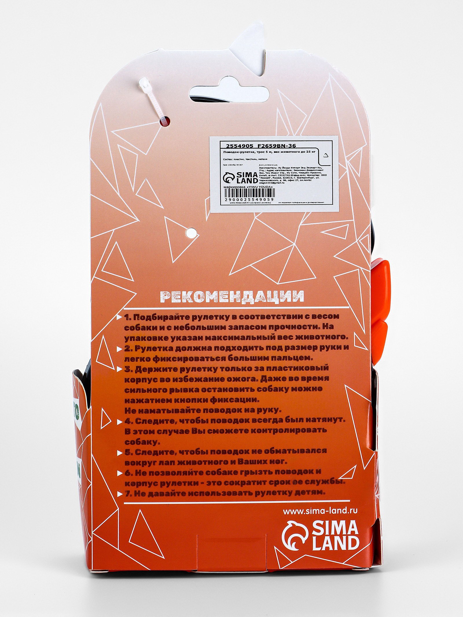 Дополнительные функции: Прорезиненная ручка, Светоотражающие элементы Цвет: Оранжевый, Чёрный Размер упаковки: 12 x 3.5 x 17.5 см. Максимальный вес животного, кг: 25 Длина поводка, м: 5 tnved: 4201000000 Длина, м: 5 Вид поводка: Лента Рулетка "Пижон" - это стильная и функциональный и стильный аксессуар для домашних животных, предназначенный для использования с питомцами весом до 25 кг. Ее трос имеет длину 5 метров, обеспечивая достаточное пространство для передвижения питомца на прогулке. Рулетка обладает прорезиненной ручкой, которая позволяет комфортно и надежно держать руку во время прогулки. Корпус рулетки выполнен из прочного пластика и легкий вес делает ее удобной в использовании. Она также светоотражающая, что обеспечивает дополнительную безопасность на прогулке в темное время суток. Трос рулетки легко вытягивается и фиксируется на любом расстоянии, обеспечивая питомцу свободу передвижения, но при этом позволяя владельцу легко контролировать его поведение. Рулетка "Пижон" является отличным выбором для тех, кто ценит комфорт, надежность и безопасность своих домашних животных. | ||